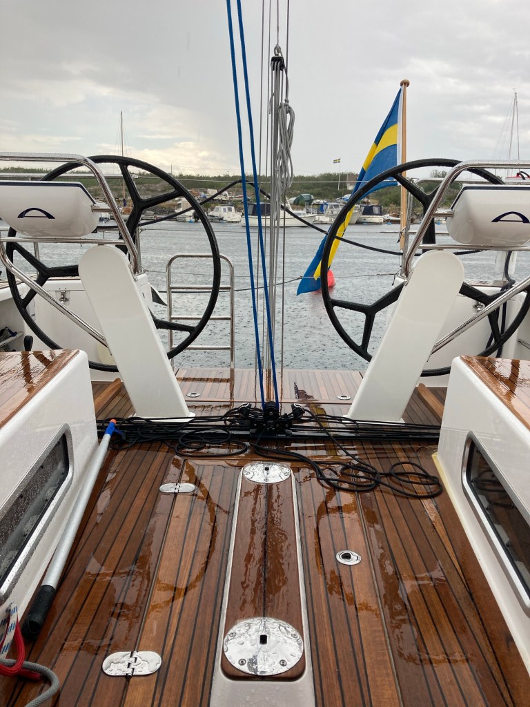 Midsommar förnekar sig inte; solgass och regnskurar omvartannat. Hört om vår båt: ”den vackraste på marknaden”. Skepparen myspyser.