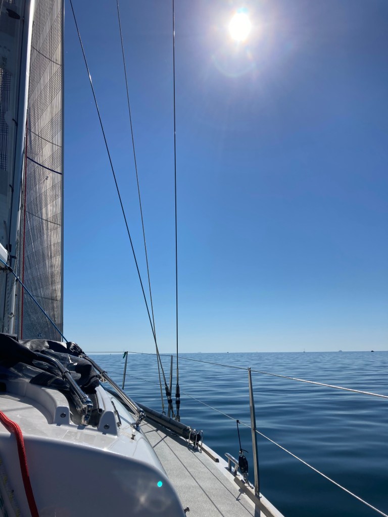 Sedan friskade det i och vi fick upp båten i imponerande 4,5 knop. En skön dag till sjöss!
