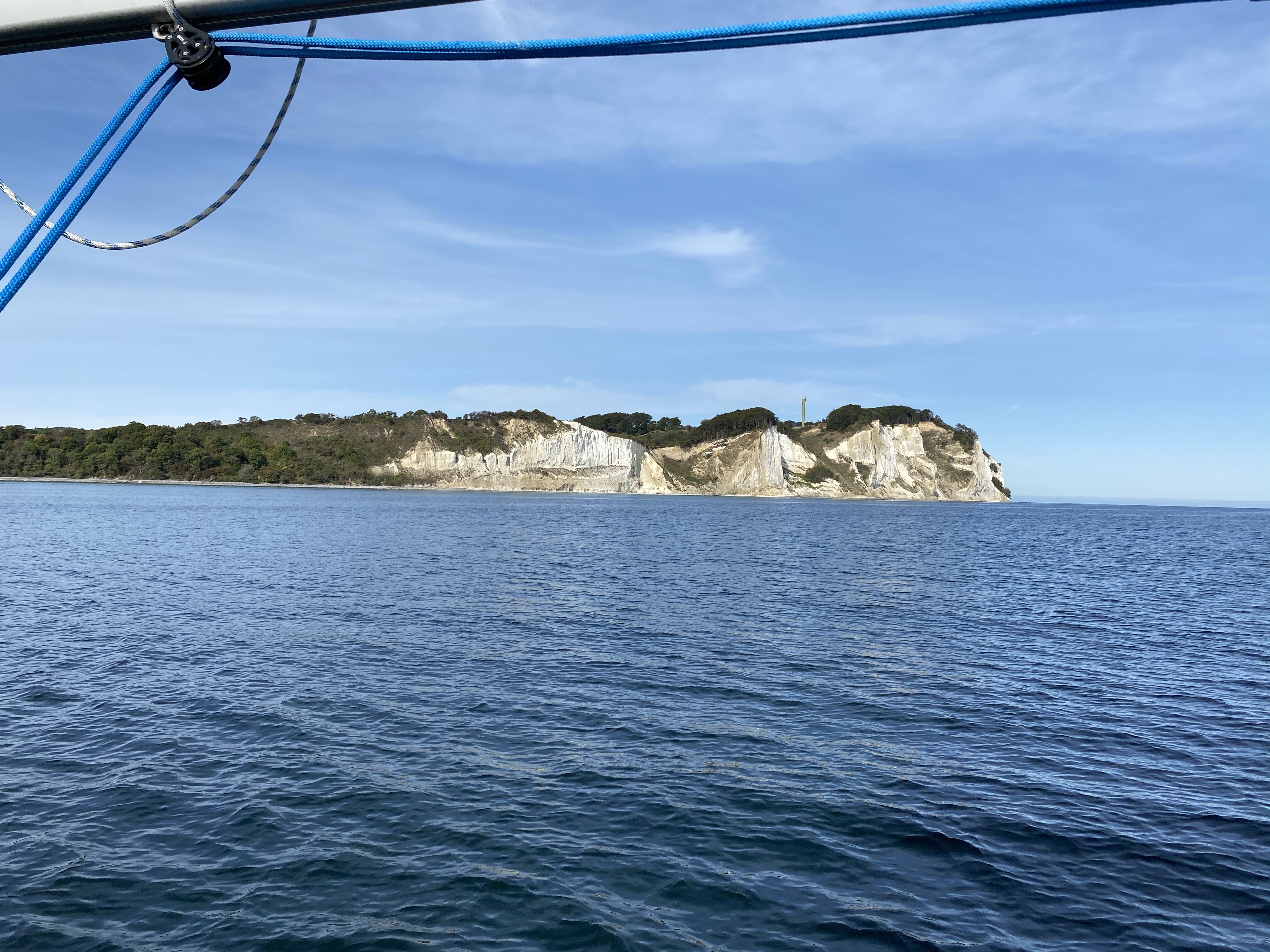 Lördagen började vi med dopp på den närliggande stranden och därpå segling i mycket svag vind som gick och avslutande motorgång till Rödvig. En härlig dag som hade mer karaktären av sommar än höst!