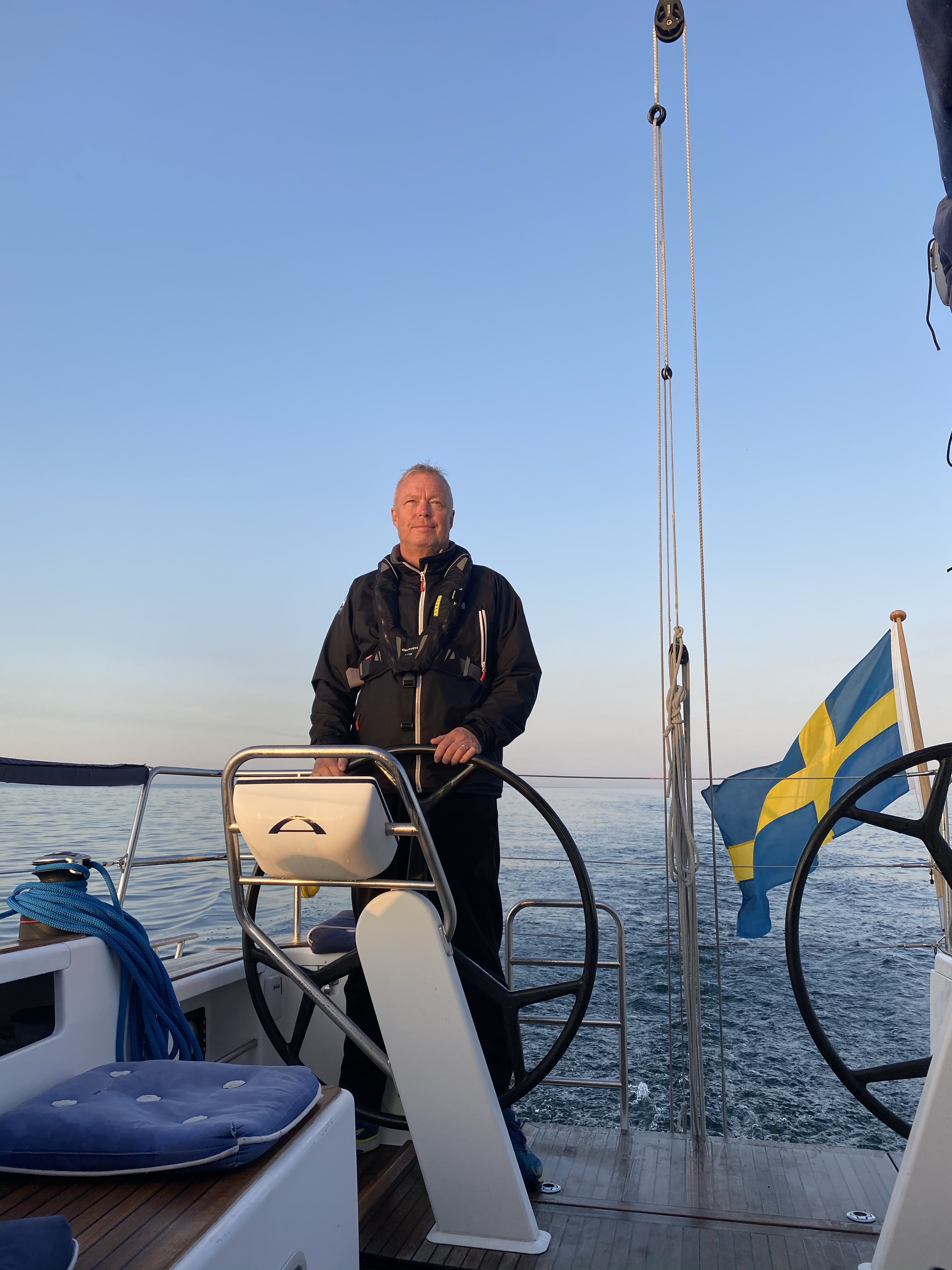 September 18:e stävade vi = P-O, Janne, Johan Lindgren och Kapten själv Johan mot Klinthamn på Mön. Fin bidevindssegling i 5-7 m/s. Toppade med 8,2 Knop.