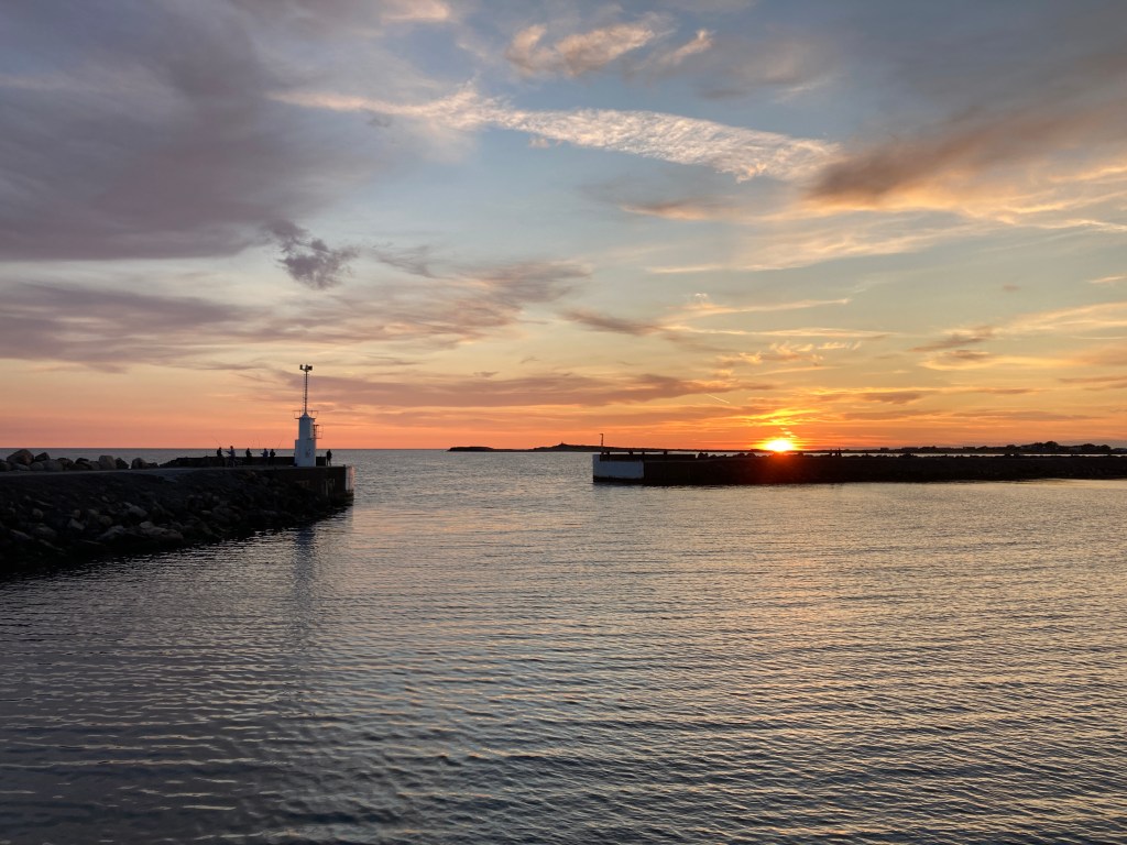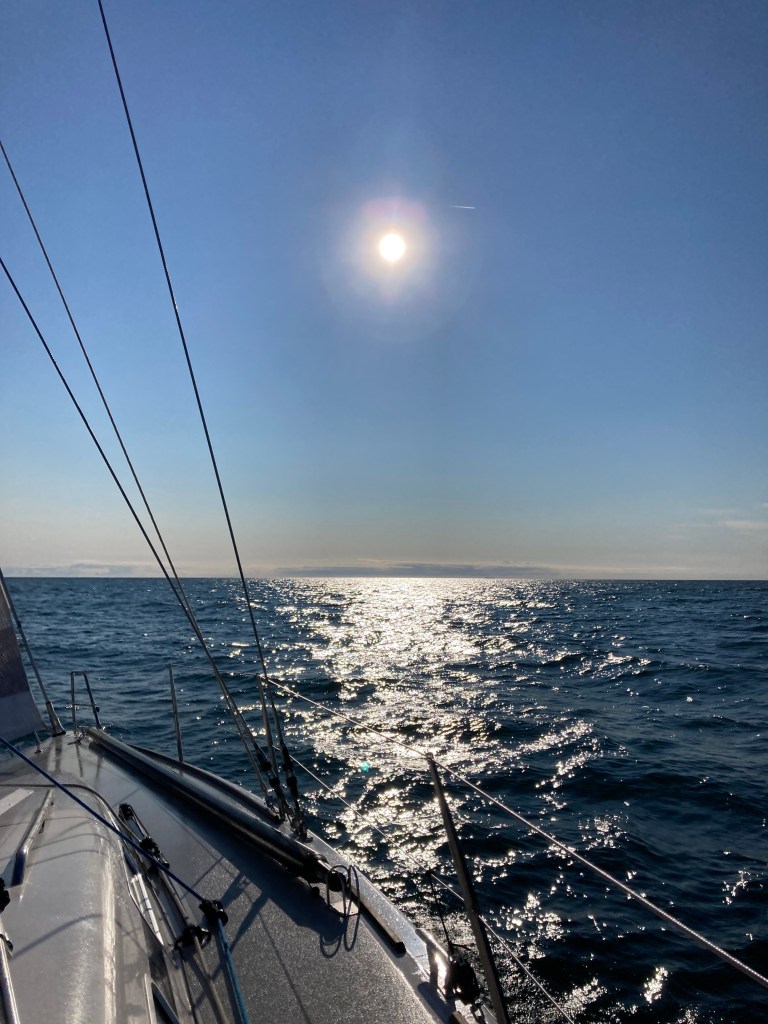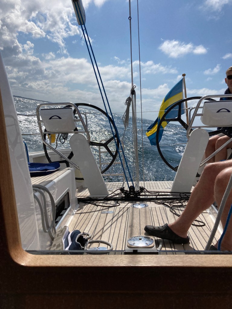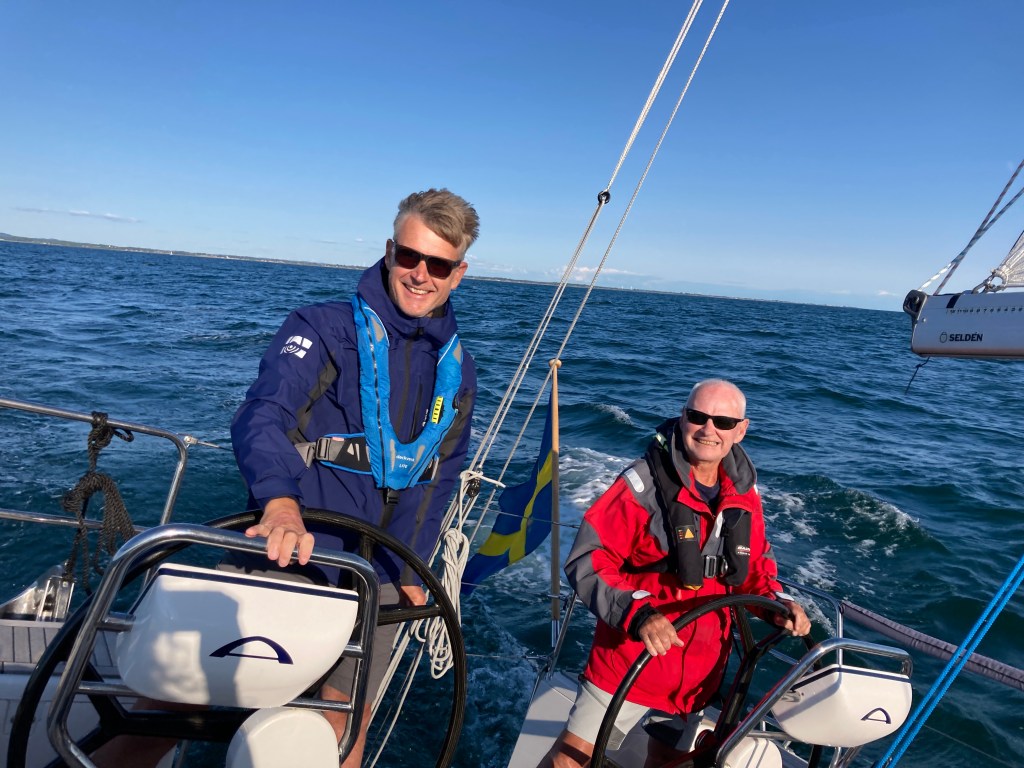 Vi lämnade Helsingör med siktet inställt mot Gilleleje men insåg snabbt att vi kunde sträcka mot Glommen, om vinden höll sig stadig. Och det gjorde den! Vilken seglats vi fick, bidevind ända till Falkenberg och sedan några slag för att kunna ta oss till Träslövsläge. Där mötte Yvonne och Nial och vi hade hoppilandsnacks på bryggan.