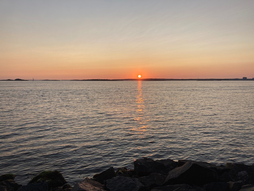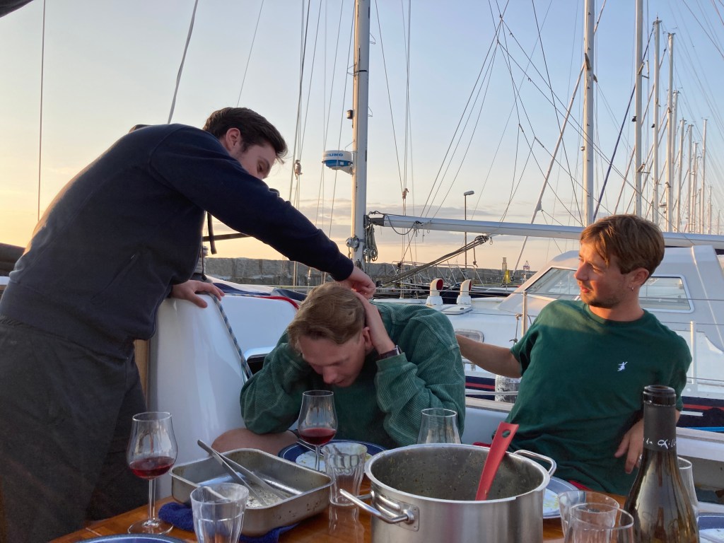 Vi började för motor men kunde efter ett tag hissa segel och fick en underbar dag i bidevind mot Göteborg. Långedrag visade sig vara en oväntat mysig hamn och vi la oss mot piren och solnedgången. Ny pigg besättning mönstrade på, William och Oscar. Välkomna!