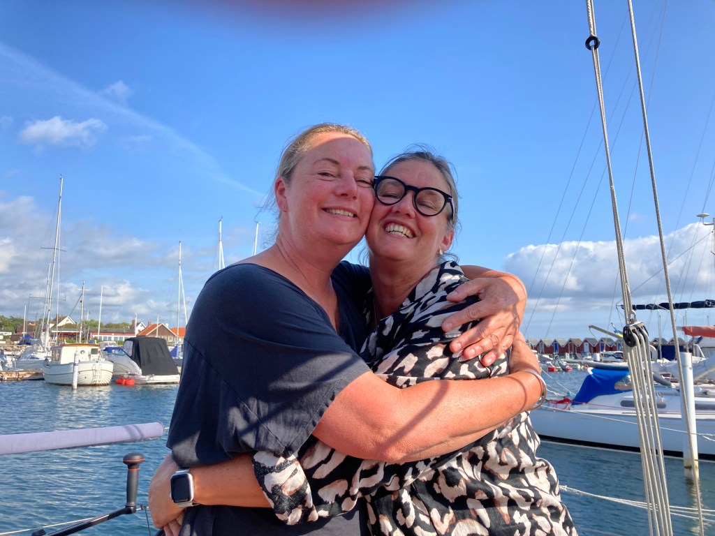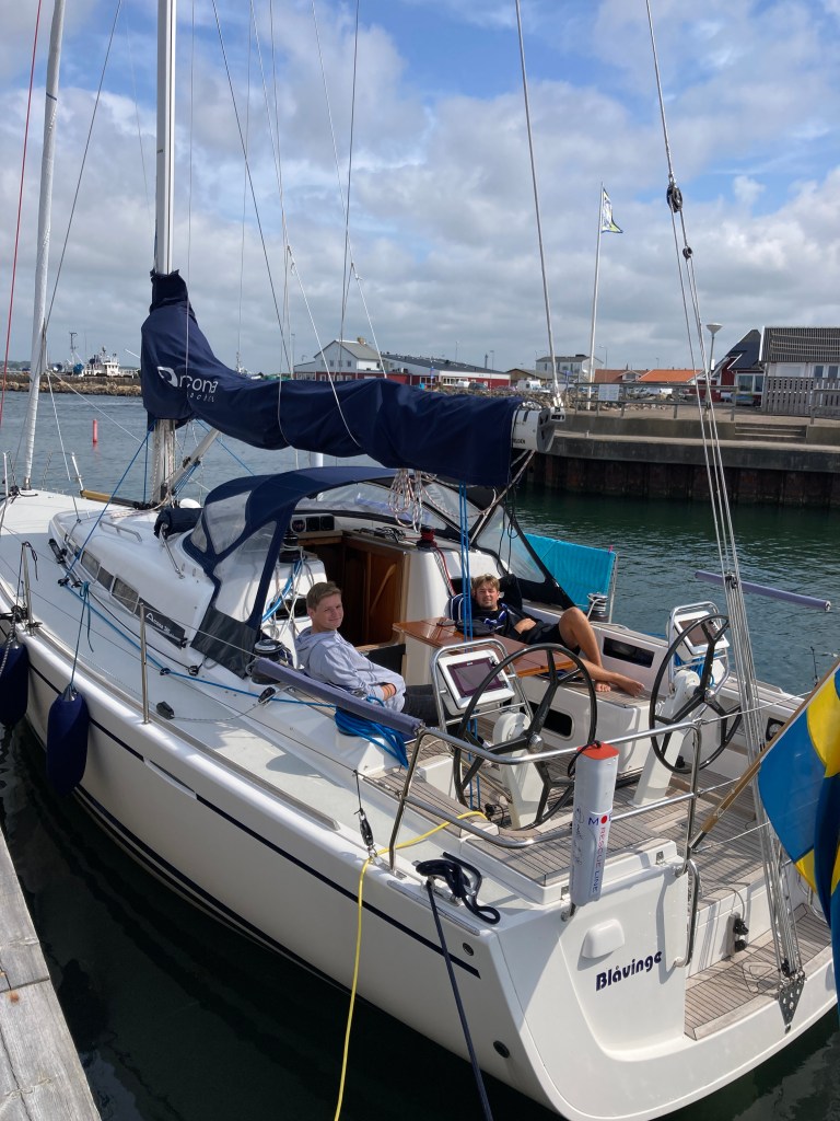 Efter en ryckig natt bytte Johan till tampar med gummibussningar och vi gungade sedan fint. Blåvinge fick besök från bittida till sent (Nilssons, Fälth, Petterssons och en Fälth till), vi åt lunch med Nilssons på Spiseriet, sa hejdå till avmönstrade Håkan på stationen i Varberg, Krusse bjöds på bubbel hos Petterssons medan de kvarvarande herrarna provianterade, Nisse badade på piren med kusinerna och sedan avslutade vi med havskräftemiddag hos Yvonne och Nial. Gott att vara i ”hemmahamn”!