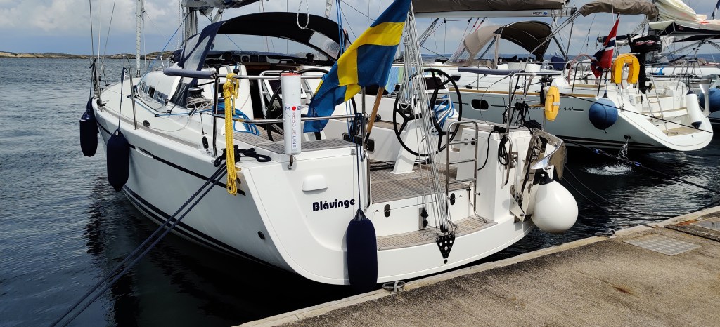 Blåvinge visar sig som vanligt på styva linan och äter båtar på en härlig kryss ned till Gullholmen. ”Bra fart ni har” meddelade en spinnbåt som tajmade vår styrbordspassering med pratdistans. Elegant! En trimaran med kolsegel vek ned sig och vände när vi precis skulle passera. #ännu inte frånseglad.
