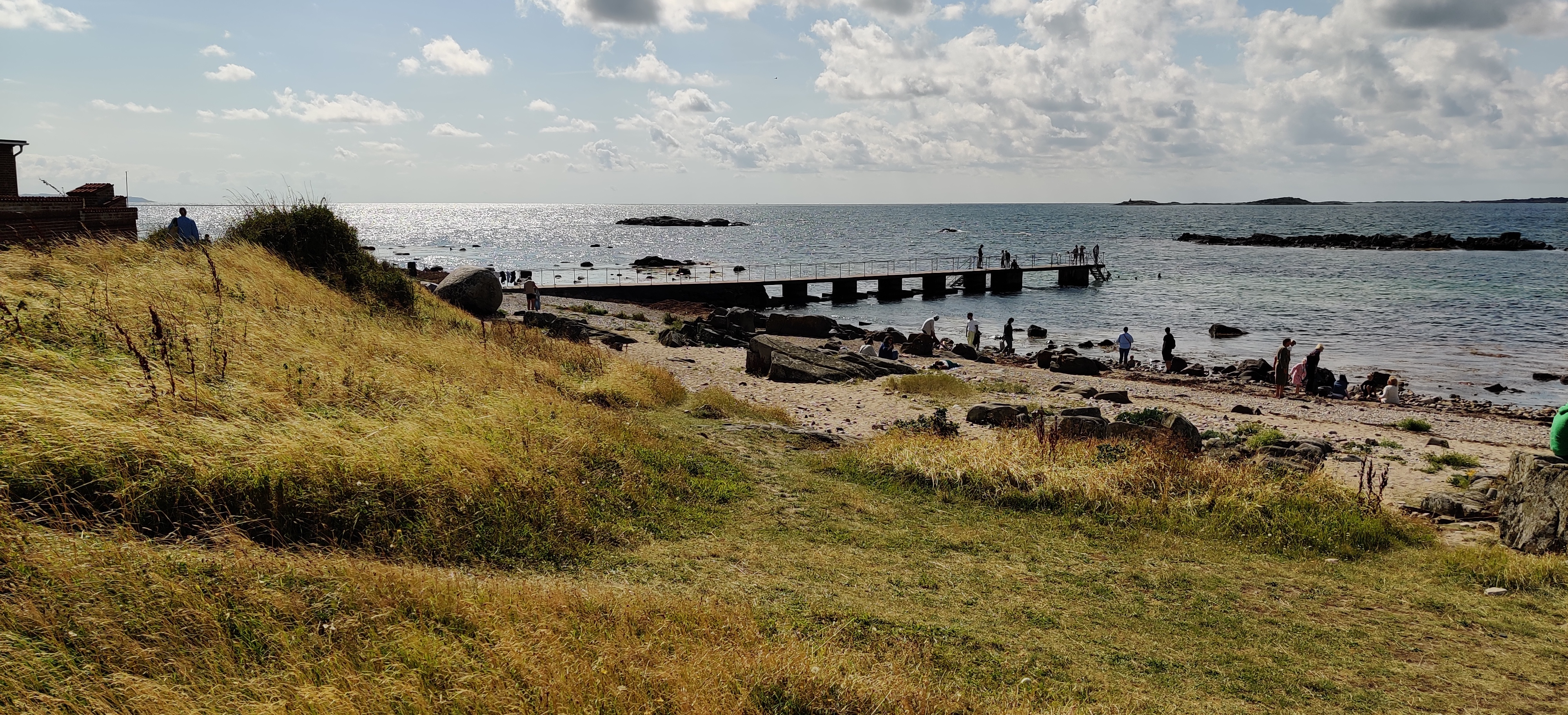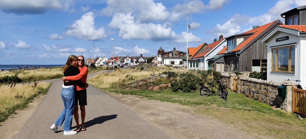 Torekov bjuder på sig med sköna promenadstråk, män på elsparkcyklar och familjer i badrockar.