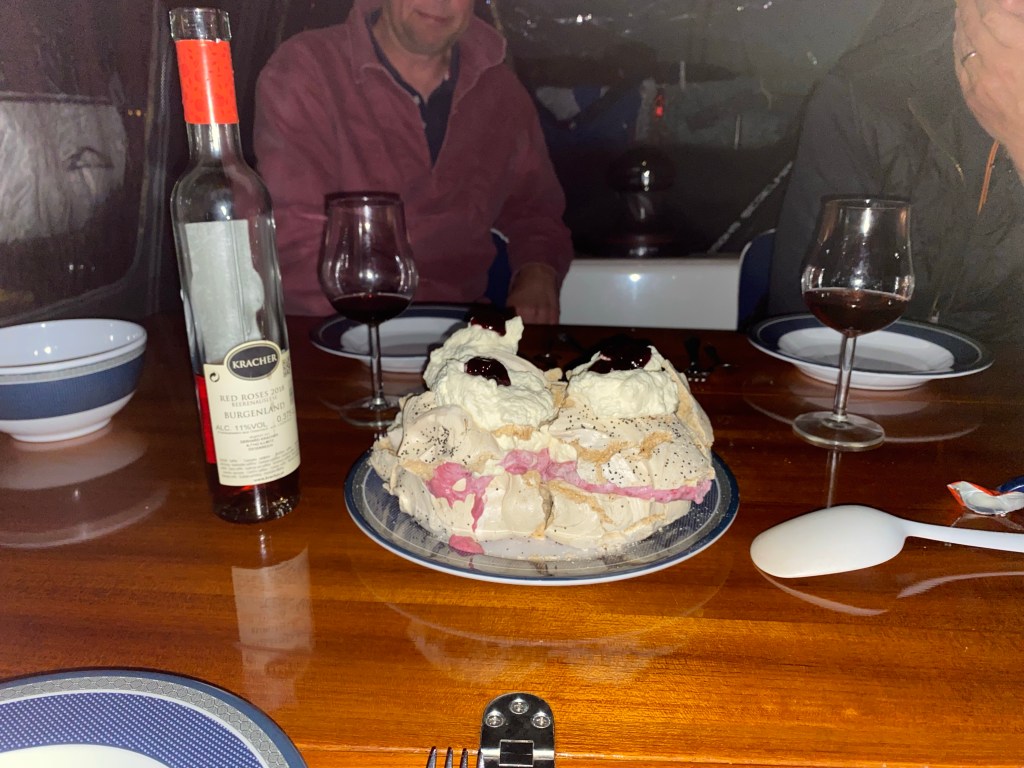 Tre fina dagar i Öresund och Kattegatt. Vårt mat crescendo uppnåddes på lördagen då vi inledde eftermiddagen med chokladbakelser och rosa Charles Heidseck champagne sponsrat av Elisabeth då det var hennes och Eriks 28åriga bröllopsdag (stort av Elisabeth att låna ut Erik på denna dag). Senare på kvällen var det direktimporterad pesto med pasta och Finkyckling. Detta följdes av Johan Lindgrens stinna ostbricka som innehöll bla Greyer och Tome. Nu var magen stinn men det var ändå möjligt att njuta av en god marängbotten från bageriet på Gilleleje, toppat med vispgrädde och hemlagad björnbärssylt från Kullahalvön och därtill alldeles utmärkt söta dryck från Österrike (på bild). Till all maten hann vi avhandla vår ålders stora fråga. Vad gör vi nu när alla barnen har flyttat ut? Diverse drömmar lyftes fram såsom att köpa lght i södra Frankrike, flytta till Kullahalvön, checka ut o segla ner till medelhavet, byta jobba och bli Franchiser hos Janne på Storemore. Samtalen får fortsätta i vårt chatforum. Vi kan inte vänta till Sälen på en uppdatering av dessa stora frågor.