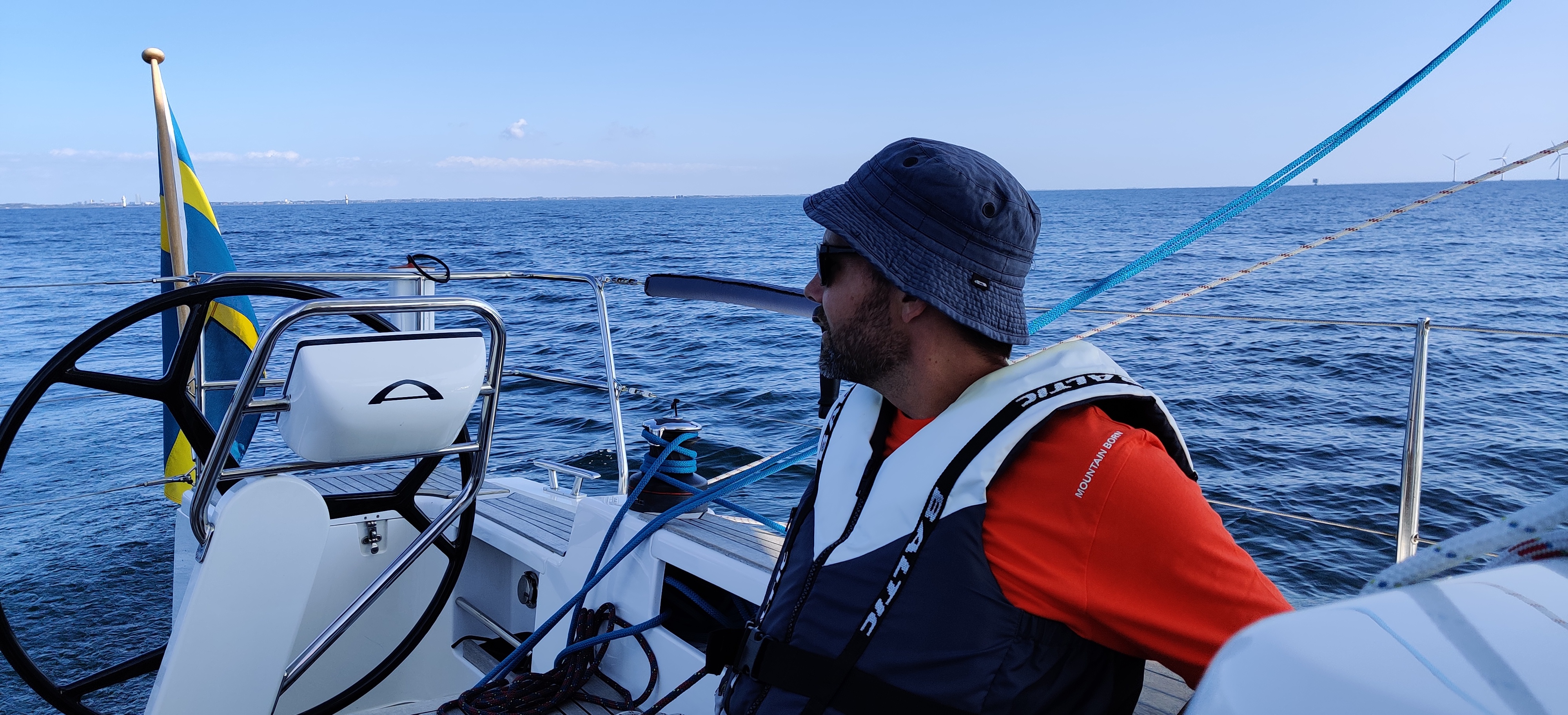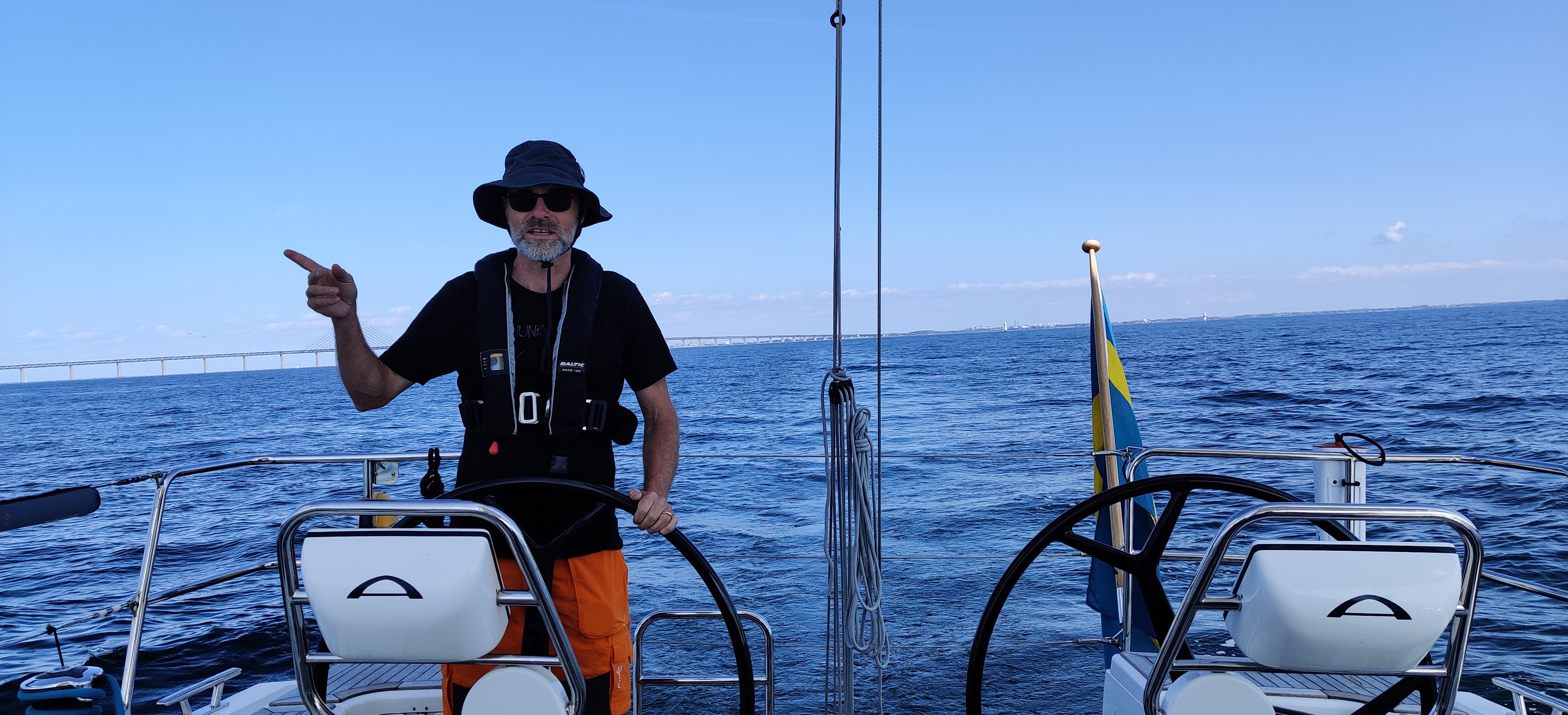 Vi strävar mot SV efter bron. Danska flaggan ska hissas i seinfallet.