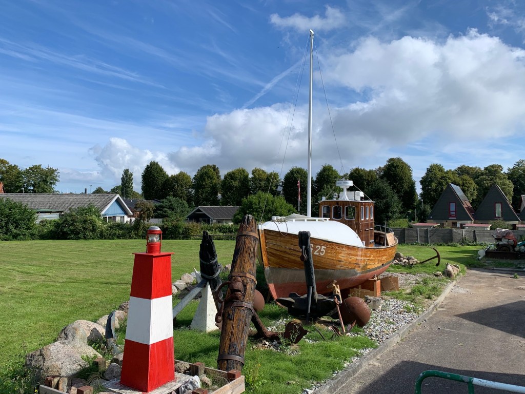 De har gillrat en del fällor de där danskarna. Är det månne för att hålla den svenske turisten borta i dessa Coronatider? För utanför hamnen så har de placerat ut ett tjog grova pålar på djupt vatten. Vi misstänker att de sätter garn på dem för fiskefångst men tusan vet om det inte är för att spela inte ont anande seglare från det rika landet i öst ett spratt. Vi tvingas till en kraftig babordsgir och klarar oss undan skador. Så lätt ska inte dansken komma åt oss!
