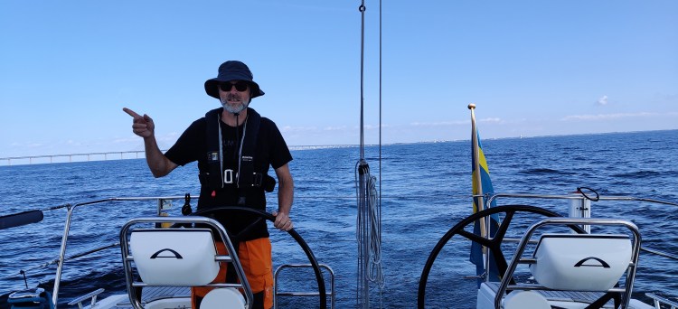 Klockan 12.00 och två seglingssugna kliver ombord Blåvinge efter tåg och taxi från Stockholm. Skepparen är ute och letar Malmös bästa Falafel. En vegansk och två med extra allt. Svett efter att ha cyklat genom halva Malmö blir det dopp från aktern före lunchen intas. Solen skiner och vi får bevittna NM i Laser med tävlande som går ut för att kämpa om medaljerna.