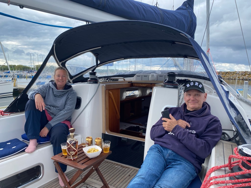 Så är vi äntligen på väg. Idag ett litet hopp till Simrishamn. Det firar vi med öl och rom.