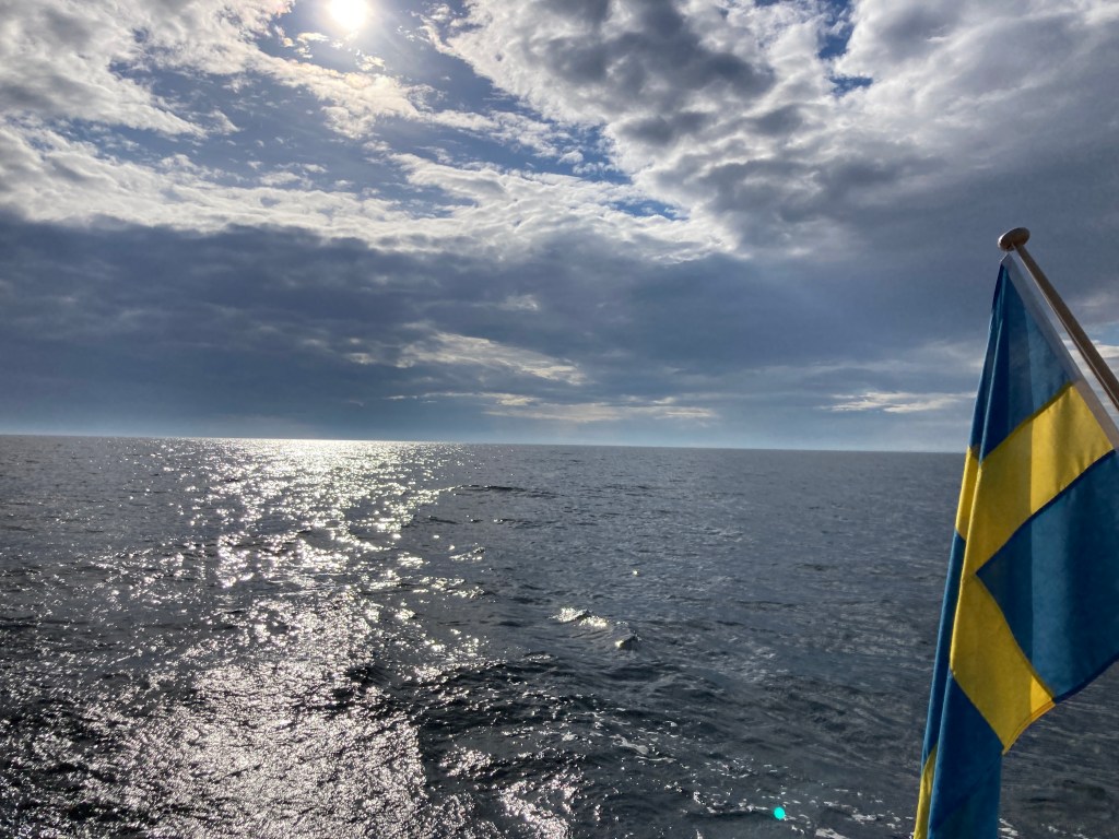 En lång skön dag till havs har vi. Vindarna har svängt hit och dit och det har nog varit lika mycket motorgång som segling. Karlskrona närmar sig.