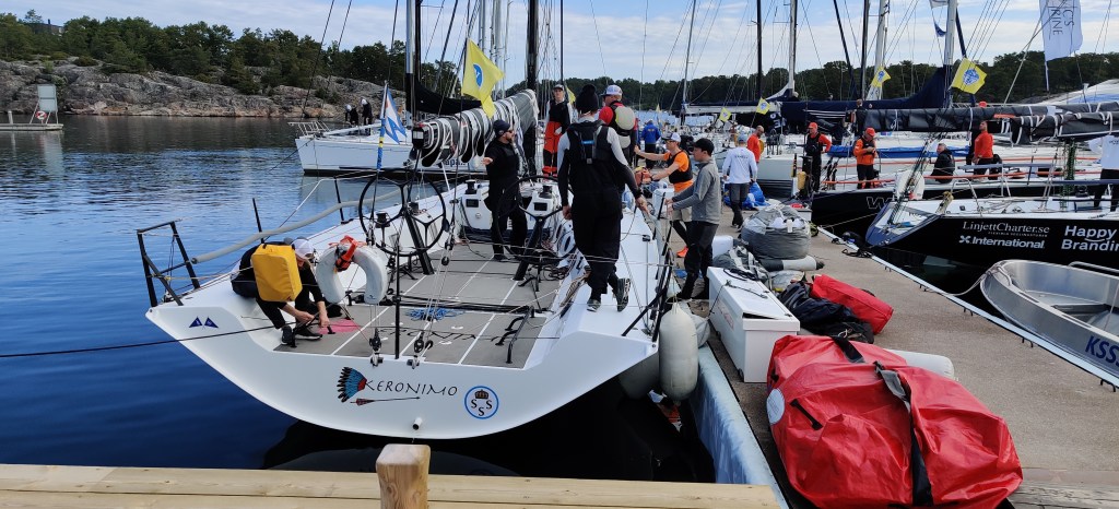 Så ska Blåvinge ut på havskappsegling igen. Besättningen övat gippar i 4-5 meters vind. Sedan mat och säkerhetsgenomgång. Skepparmötet kl 17:30 sedan start efter 18:45.