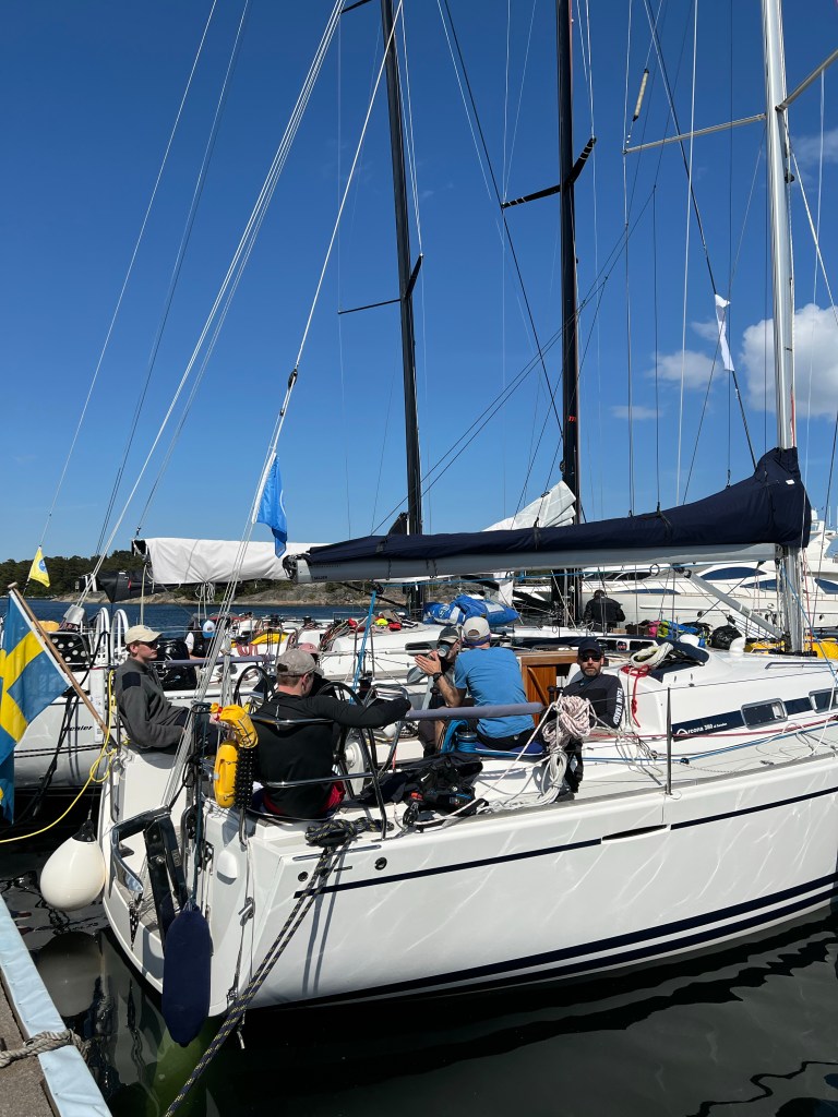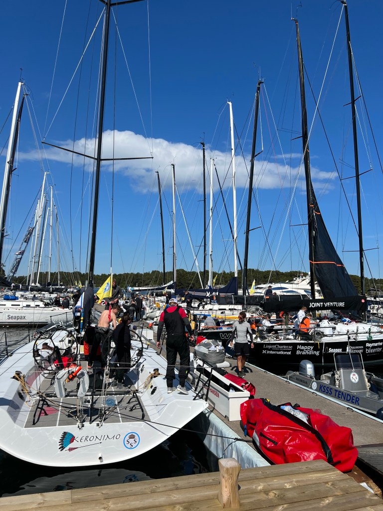 Nåja, de andra båtarna var nog glada att få lite extra plats på bryggan för sina segel. Det var i alla fall fascinerande att känna att vi med Per Lembre som skeppare INTE var i närheten att vara bland de satsigaste inför detta race (vi har ju inte ens matchande eller brandad utrustning nu när jag tänker efter).