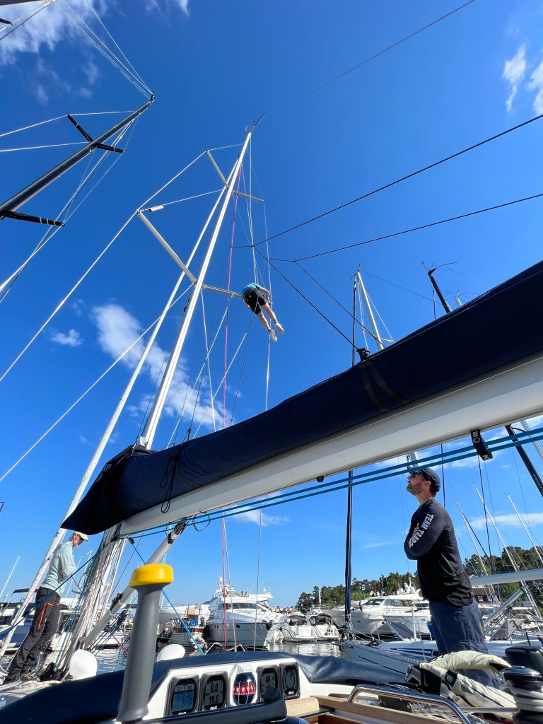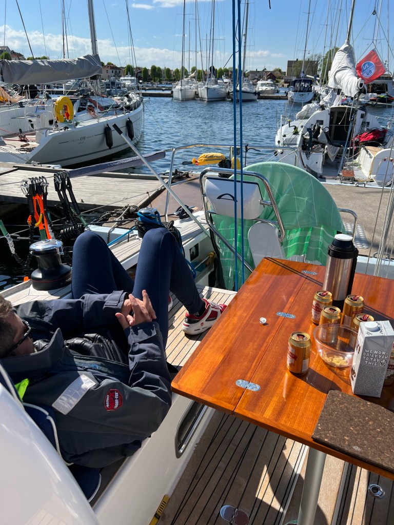 Till att börja med måste vi tala om regattahänget vid bryggan. Spontant tänkte jag att en nypolerad Arcona 380 räcker bra att skylta med för att bli inkluderad bland seglareliten, men icke. Hade du inte minst två olika försegel och två olika spinnakers liggandes i sina stora säckar på bryggan så kunde man nästan lika gärna lämna innan start. Stack ut med aluminiumrigg gjorde man också, speciellt minns jag en av båtägarna som kom och pratade med oss och pekade ut på bryggan mot sin båt med beskrivningen ”den utan kolfiberrigg”.