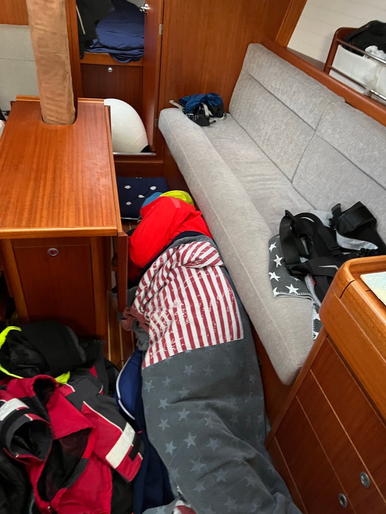 Vidare till seglingen vill jag första svara på Pers inlägg med en lika fin bild tillbaka på en ansvarsfull skeppare som slumrar gott under däck.