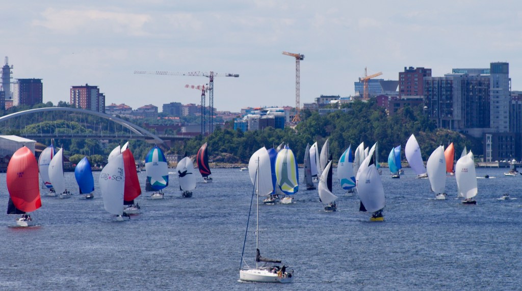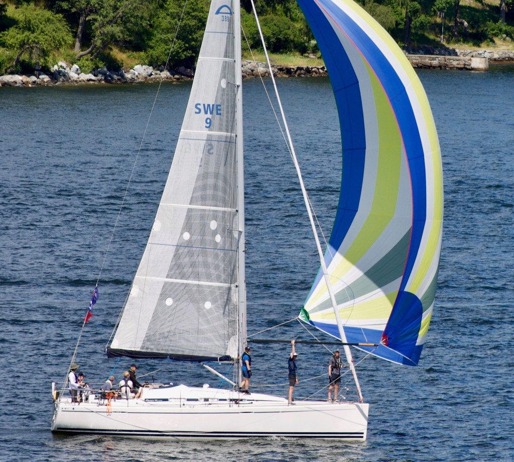Efter att vår startgrupp passerat Kvarnholmen kunde vi se Blåvinge bland alla båtar. Härlig syn.