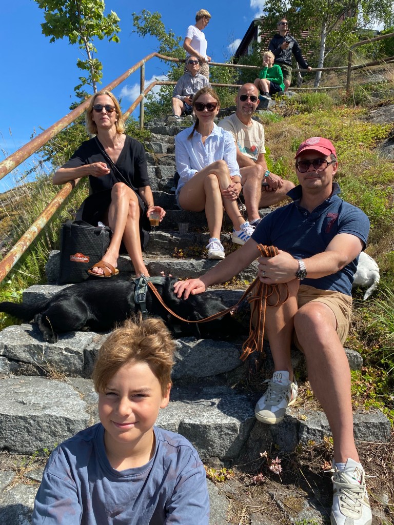 Hejarklacken bestod av familjerna Liungman, Grannas, Livijn och så jag (Carin) – plus fyrbenta landkrabborna Ester och Nelson. Vi njöt av solen och bevittnade rafflande tjuv- och rackarspel på havet där marginalerna verkade vara på rätt sida.