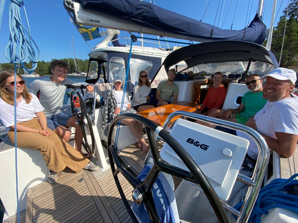 Framåt eftermiddagen dyker familjen Norlén upp med Arcona 380 Miss Moneypenny. Äntligen får vi ses så här ute i skärgården. Vi har mycket att avhandla i sittbrunnen innan vi byter plats på våra båtar och Blåvinge med besättning drar vidare för att hämta kompisen Marcus i Nynäshamn.