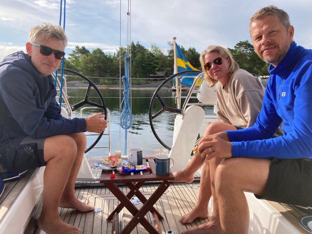Idag kliver halva besÀttningen av. Vilka fina dagar vi haft, hoppas ni vill vara med fler gÄnger, Friskarna! Som den sanna elbilsentusiast han Àr, har Janne dubbat BlÄvinge till havets Tesla. Det tar vi som ett gott betyg.