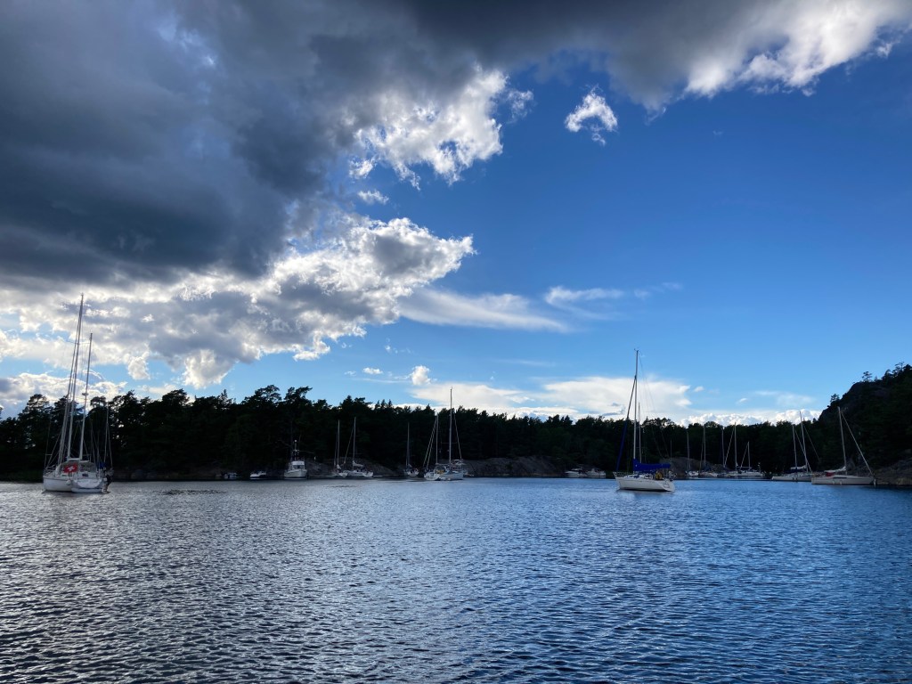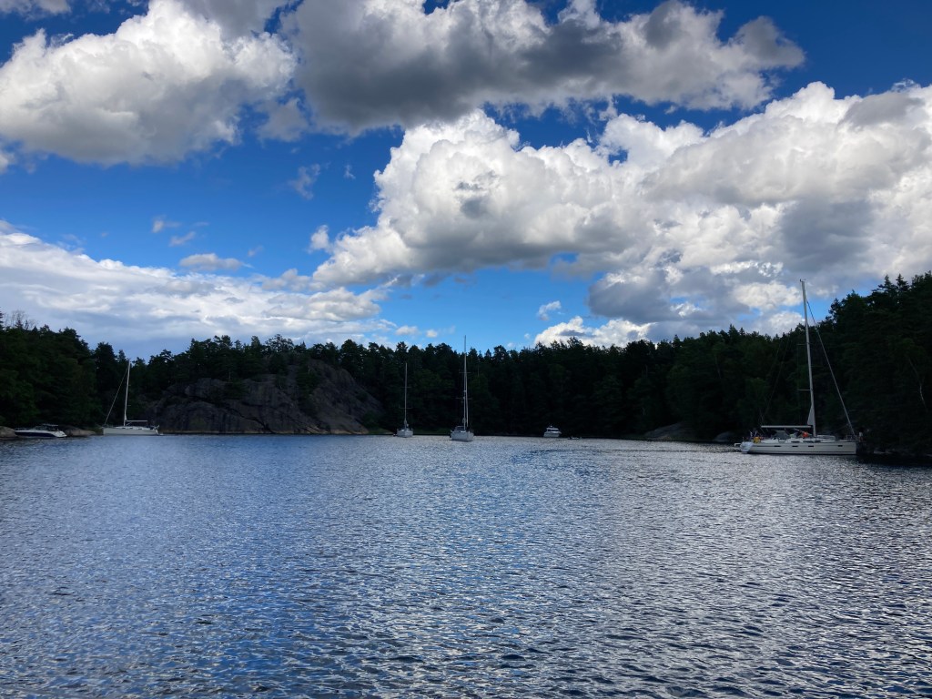 När vi nämner att vi har hemmahamn Gustavsberg får vi höra ”har ni varit i Napoleonviken då?”. Så på vägen hem tar vi en sväng inom denna vik, enligt utsago den sista naturhamnen före Stockholm. Fin och skyddad och full med båtar, här kommer vi säkert att lägga oss nån gång, som första eller sista natthamn.