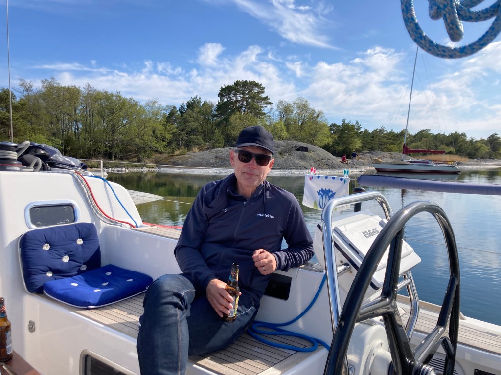 Vi lämnade Utö vid elvatiden efter en lång skön morgon i solgasset. Jonas provade Utös badvatten, det funkade.