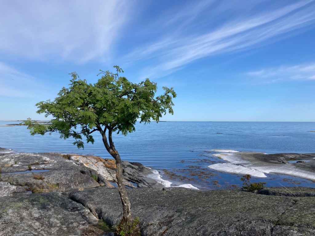 Strax före kl tre smög vi in i Byttafladen och la till mot Finnskär. Vilken härlig plats! Det blev en promenad runt norra delen av ön, tills vi kom för nära ett par häckande tärnor och vände åter till båten. Det blev en sån där skön eftermiddag då man pratar lite och sedan tystnar för att bara ta in miljön, fågelljuden och utsikten.