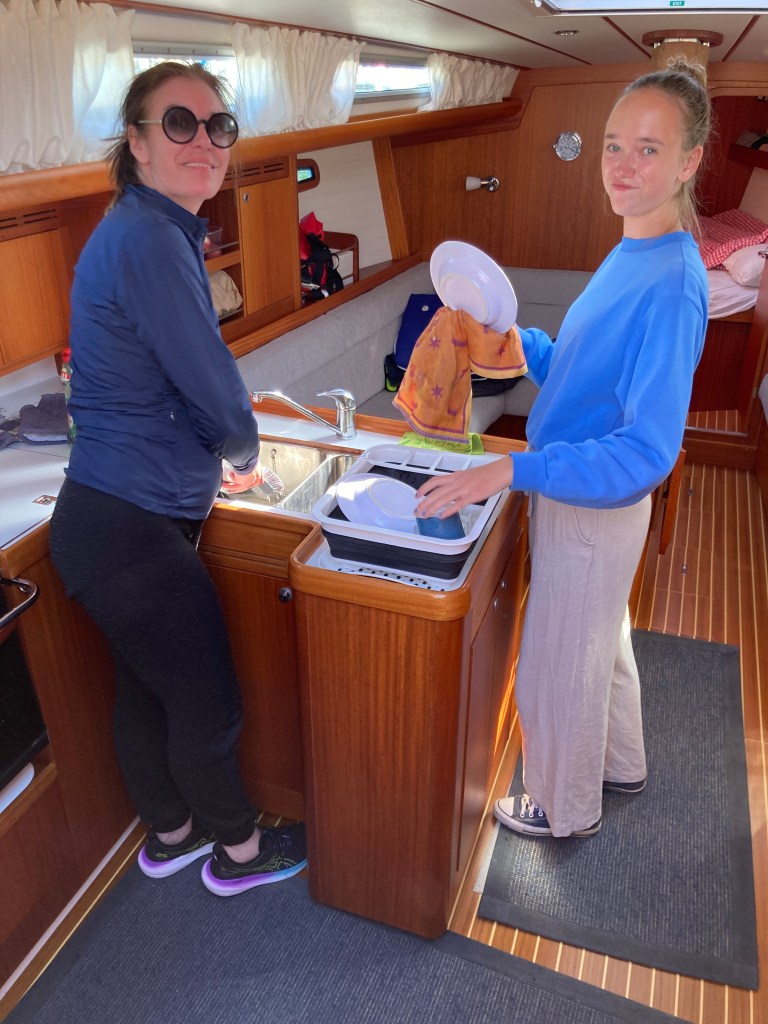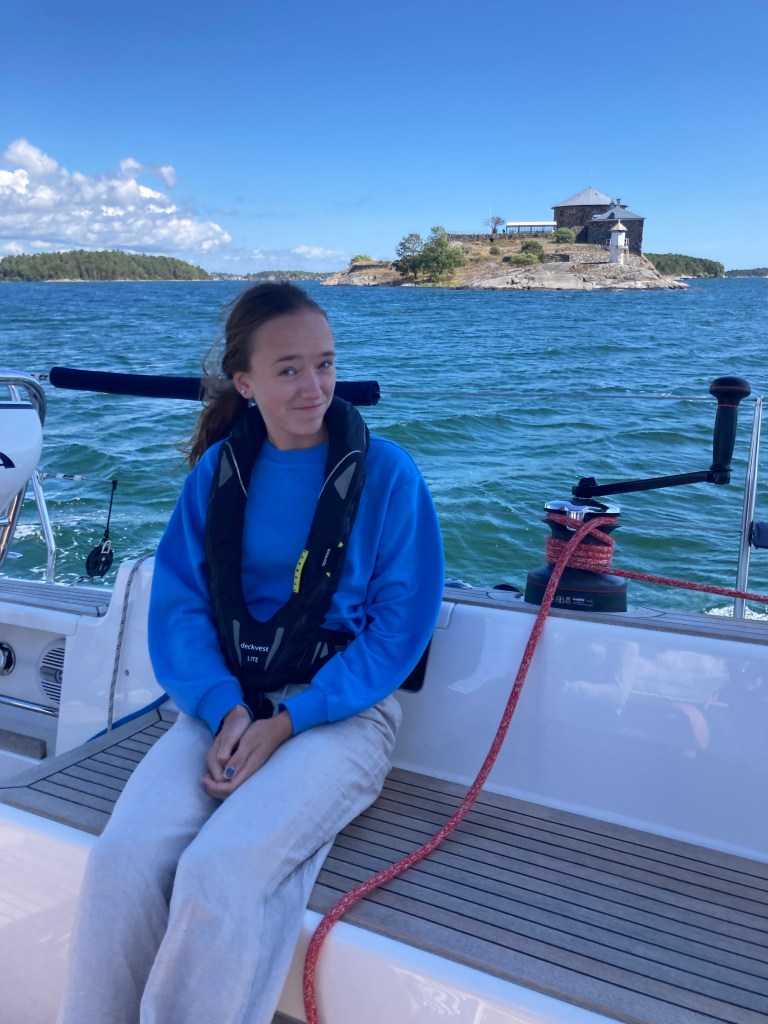 Morgonen var solig och spegelblank så det fick bli nakendopp, men fy tusan vad kallt det var i vattnet! Studs på ytan och snabbt upp i båten igen. Sedan var det gott med kaffe.