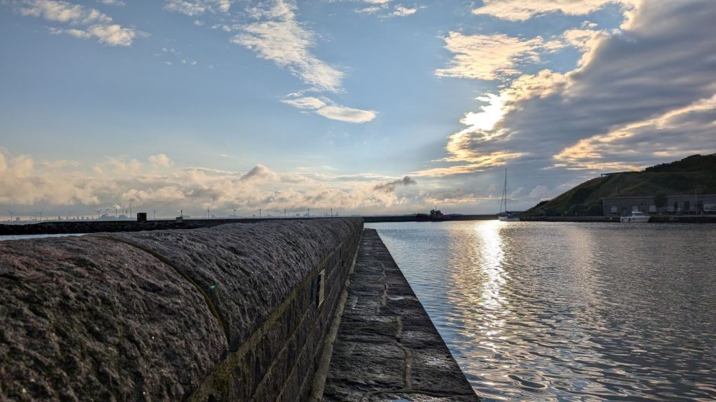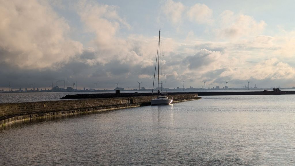 Annars fräser Blåvinge fint över havet. 8 knop till Flakfortet utanför Köpenhamn. Det klarnar upp och vi kan njuta av solnedgången och havet. Semester!