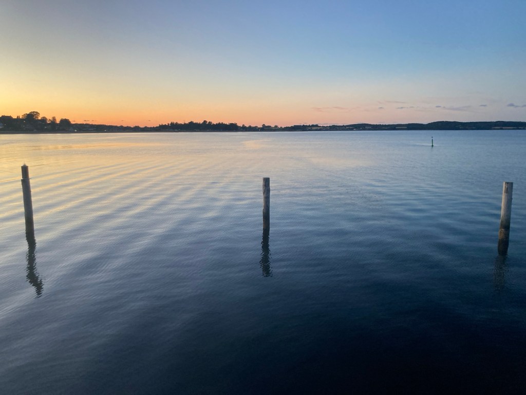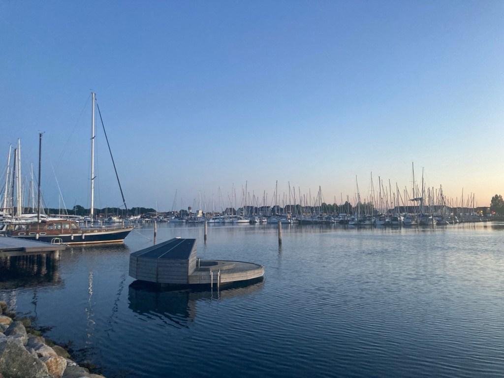 Vid halvåttatiden nådde vi Kerteminde och lade oss på den långa nya bryggan längs pirens insida, med fin hjälp från båtgrannarna. Där var det gott om plats till skillnad från på de gamla bryggorna, kanske för att det är en lång promenad till både strand och toaletter. Krusse hade utlovat kvällsmat på stan och Nils reserchade och ledde oss till en riktigt bra thailändsk krog. Gustaf bjöd på god matsmältningsyuzodrink innan vi mätta och belåtna drog ut i Kerteminde-natten. Det vill säga promenerade hem till båten. Sedan blev det sällskapsspel i kajutan tills det var dags att sova.