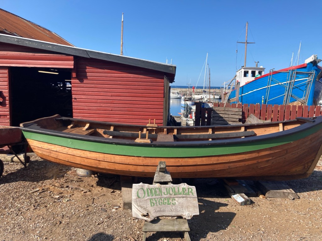 Vår plan var att gå till Ebeltoft, just runt hörnet. Väder och vind hade dock andra planer för Blåvinge och vi fick tänka om, det vore synd att slösa bort en så fin seglingsdag på bara en kort tur. Efter att tidigare ha besökt Omø, Krusses favorit och Ballen, Johans favorit blev det nu dags för Odden, Gustafs favorit. Vilken pärla! Den hamnen blev nog allas favorit. Det joggades och badades, dracks öl och vin och åts smörstekt hälleflundra.