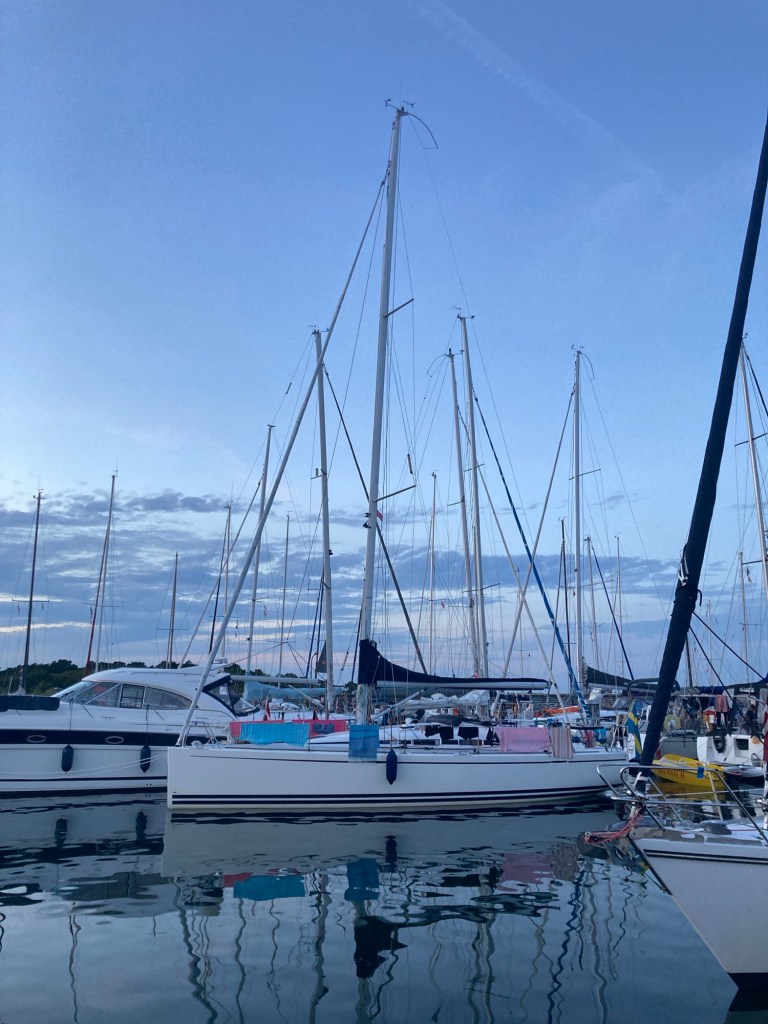Joggning, promenad, bad, båtspaning och grönsaksinköp – rutinen börjar sitta. Vi hade en mycket bra första dag ombord ♥️.