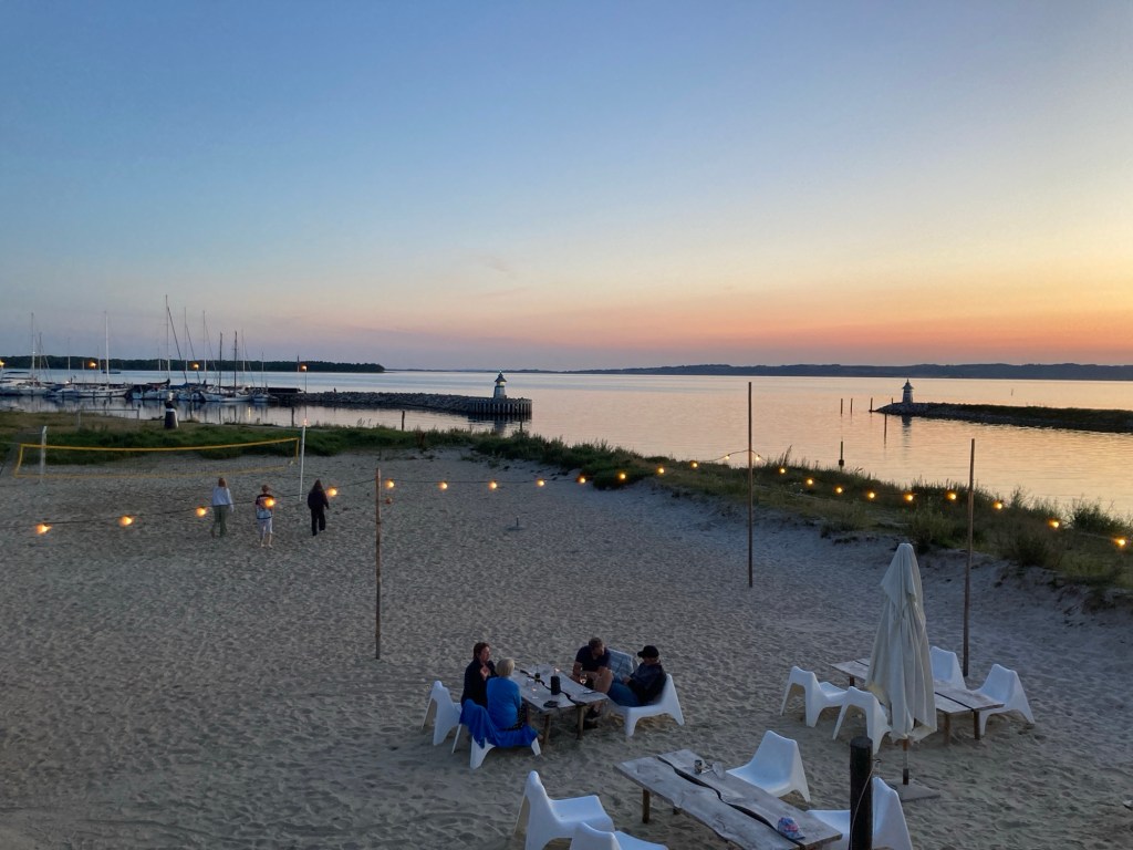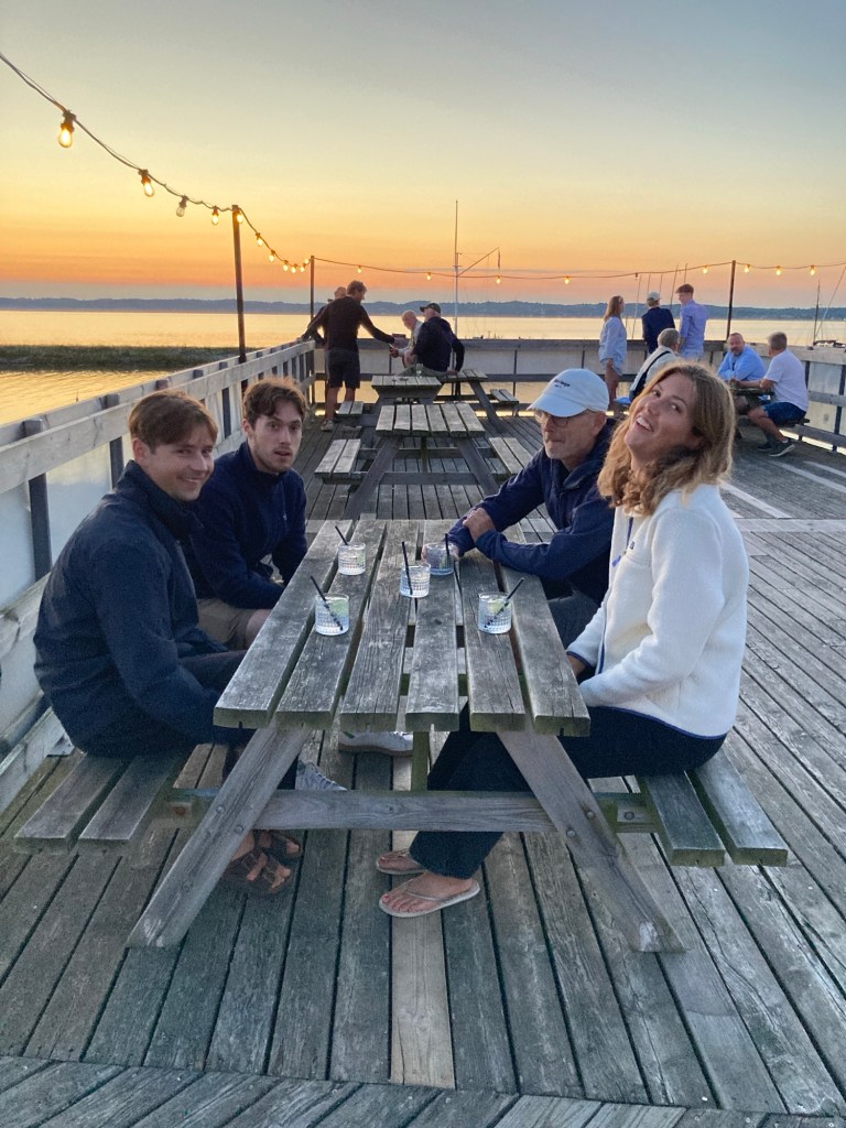 Vi vanliga människor gjorde Ebeltoft, smakade kaffe, glass och öl. Team Norskar fixade den goda kvällsmaten i båten och efter att vi i solnedgången släppt iväg Mira, som skulle börja sitt äventyr med en svajnatt i Ebeltoftbukten, tittade vi till ett par veteranbilar på kajen och en Molich X på bryggan. Vi avslutade dagen på Strandbaren med en gin och tonic. Alla utom Nora, som behövde ladda batterierna inför sin stora dag imorgon.