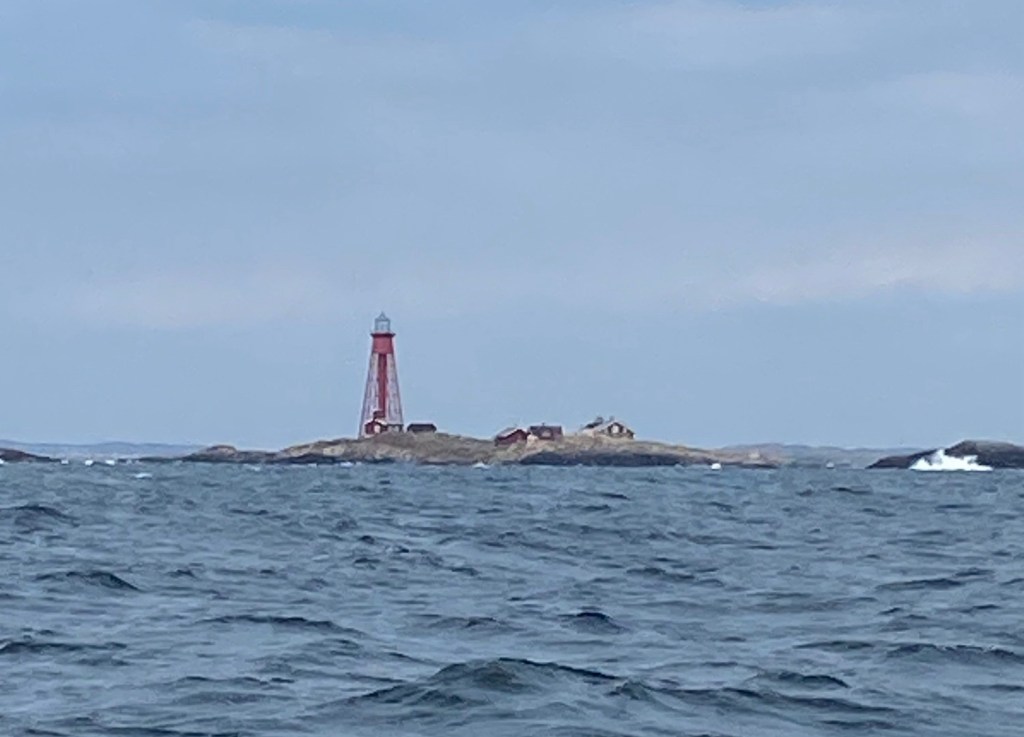 Gick ut igen och hissade med rev två satt. Sjön bygger upp och det fräser och forsar. Tomatsoppa med röda linser. Rundar Pater Noster så att Tilda ska få se fyren på nära håll. Toppar 10 knop på vägen in i Marstrandsfjärden.