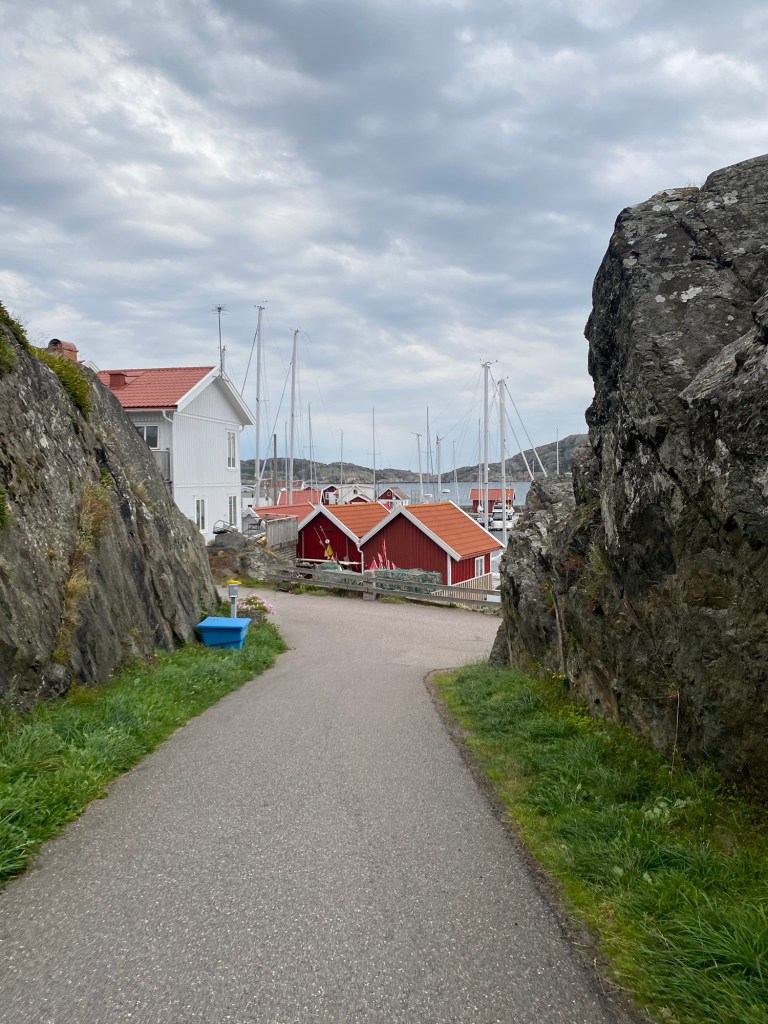 Kul att lägga till i Åstol för första gången. Lägger till som tredje båt längs bryggan. Letar upp ett ett glasskafé och fortsätter med middagsinköpen.
