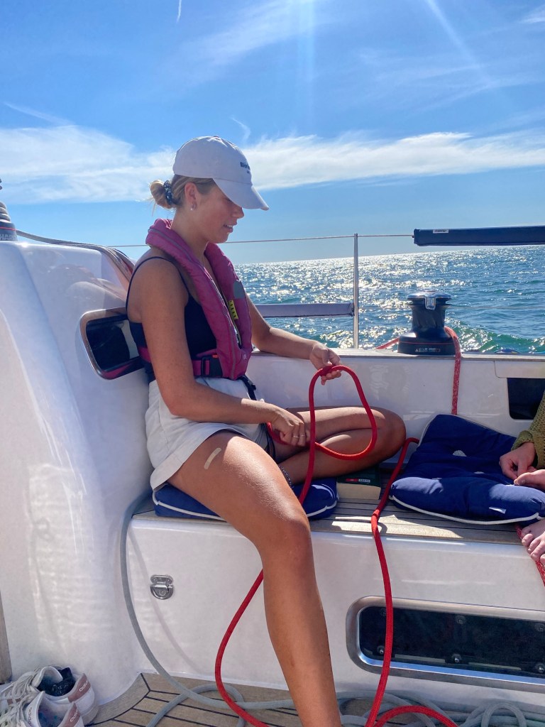 Solen gassar och de lätta lätta vindarna är ljumma för att ge en så god start det går för vår nya gast Hilde. Det har blivit mer bräda än båt tidigare så vi får äran att introducera henne till båtlivet med bästa tänkbara förhållanden.