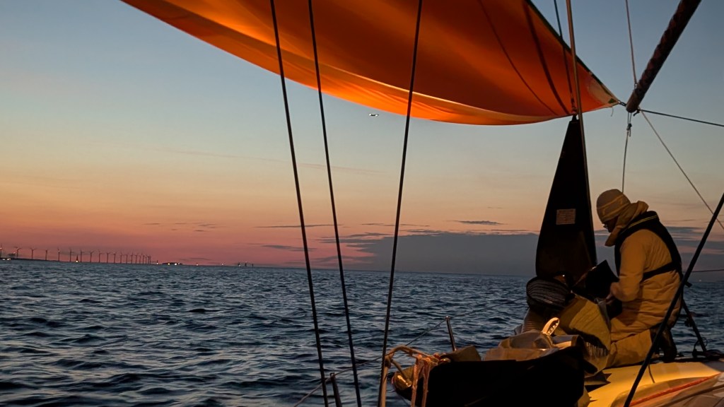 Leg Gilleleje – Själlands Odde: 5 timmar tar denna del av banan. Vi ser Festina glida iväg på sin Code0 men när vi kan fylla vår Apelsin (spinn för reaching) så går vi plötsligt ikapp och ifrån. Vi tar två placeringar och rundar udden som 4:a i gruppen. J112 Joy i ledning. Vi är 26 min bakom på detta leg och vi har Festina 19 min bakom oss. Apelsinen är ett bra segel vid true 110 grader och vind 4-7 m/s.