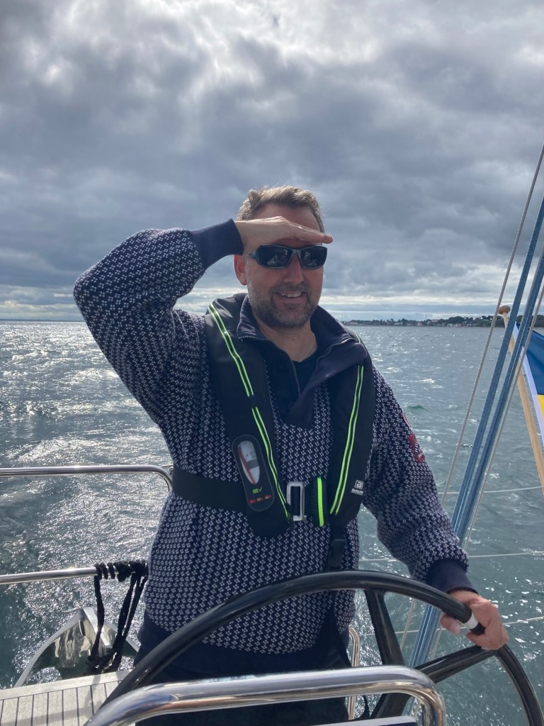 … på Nordsjälland styrde vi kosan. Rorgängare Pettersson tog oss i en stilla läns, övergående i slör, till Sjællands Odde i ömsom sol, ömsom moln. Regnet slapp vi denna dag.