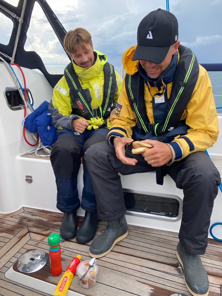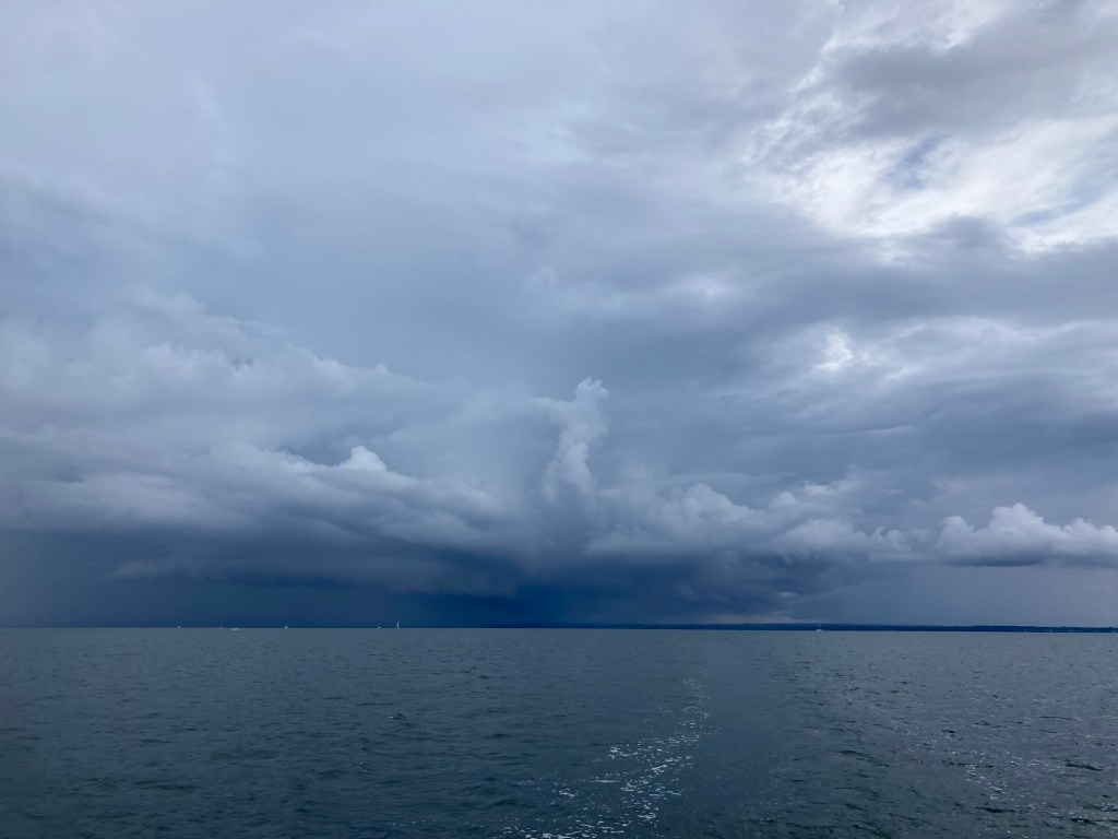 Sedan blev det dags för Erik att ta över rodret och styra undan från åskan och de jagande regnmolnen. Det gjorde han med den äran, vi undkom helskinnade.