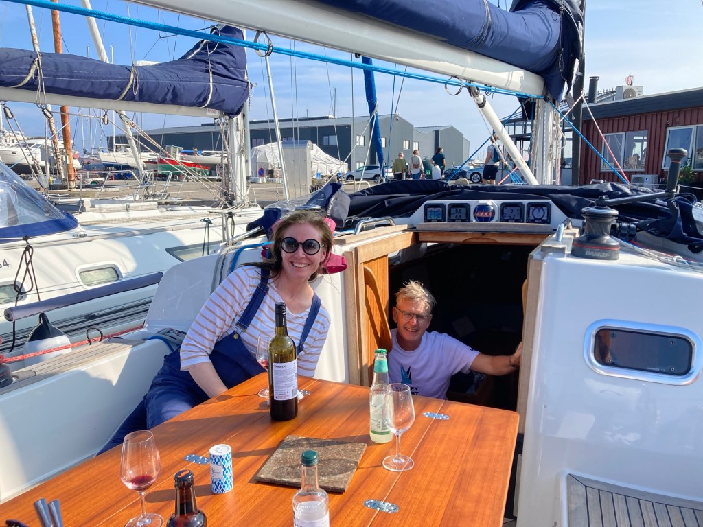Johan, Mia och Krusse hade laddat i veckor för denna helg, så taggade allihopa! Väderprognosen hade förbättrats för var dag och lördagen kom med halvsol och sydlig vind 5m/s. Perfekt att dra till Dragör. Överfarten tog bara 1,5 timmar så det blev gott om tid att käka lunch i båten och sedan promenera bland de söta husen. Det blev också en tur till fortet söder om byn, det visste vi inte ens om att det fanns innan idag. Efter en stunds vila i båten drog vi ut på byn igen för att hitta en kvällskrog. Första stället var fullbokat så vi hamnade nere i hamnen där vi åt olika fiskar. Kvällen rundades av med hemmagjord glass på Dragör is och en stunds småprat i Blåvinges salong. Fin dag och nöjd besättning.