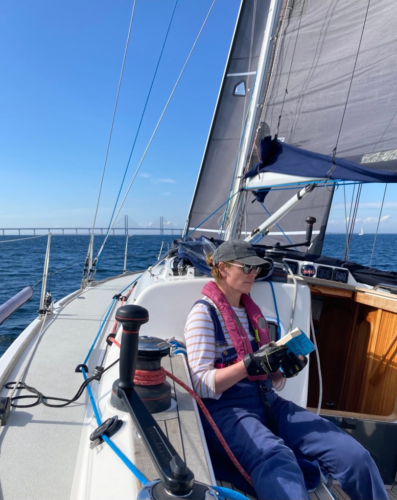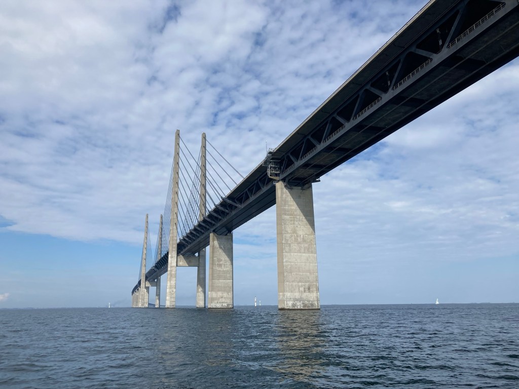 Uppe med tuppen var vissa ombord. Då får man se soluppgången över sundet.