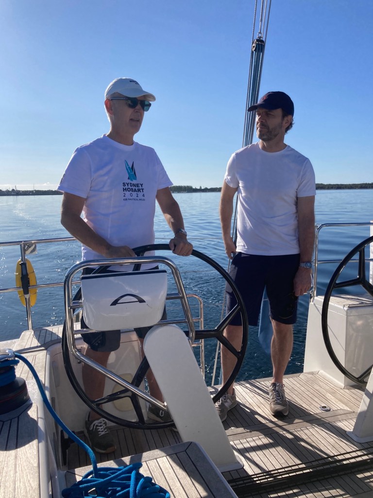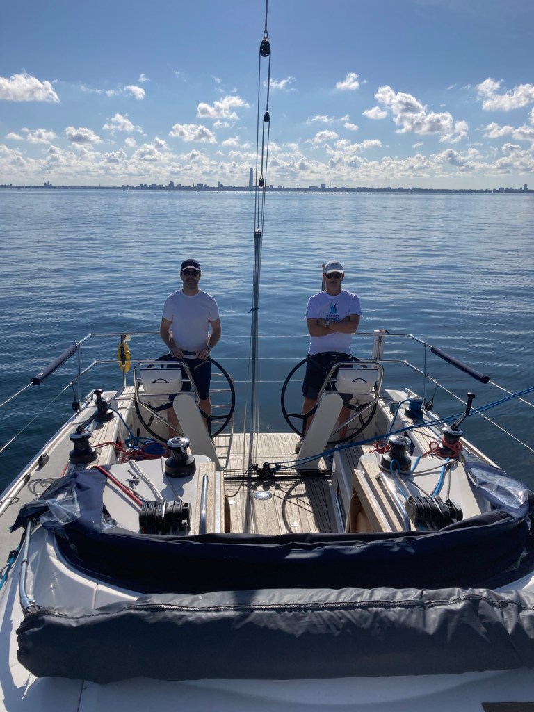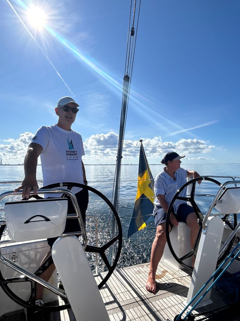 Idag hälsade vi fransk-australiske Olivier, Johans kollega från Melbourne, välkommen ombord. Dagen började med svaga men fina segelvindar och Blåvinge gled elegant genom Sundet.