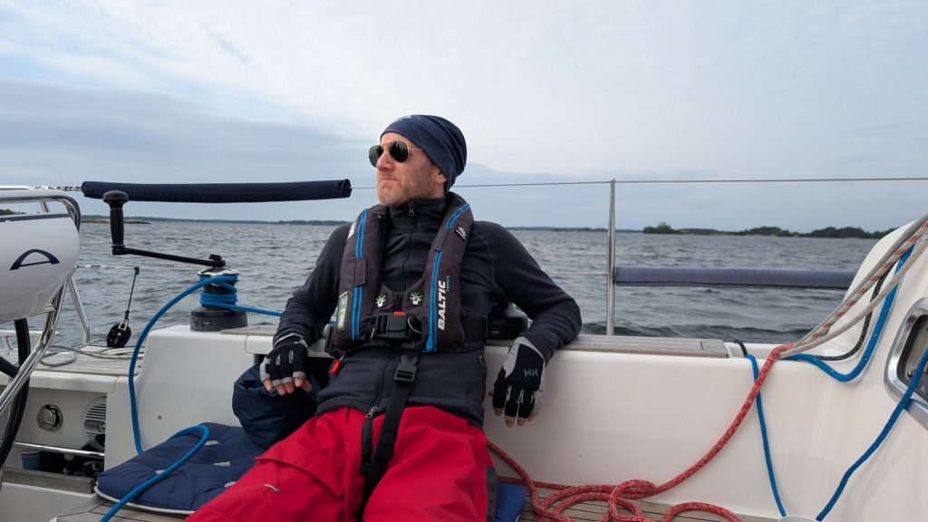 Vindarna är fortfarande med oss. De är milda och lite mindre starka nu. Vi tar oss norrut med stor och focken åker ut när vinden tillåter och in igen när det blir för platt.