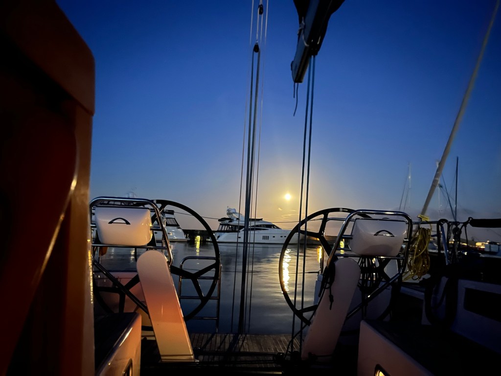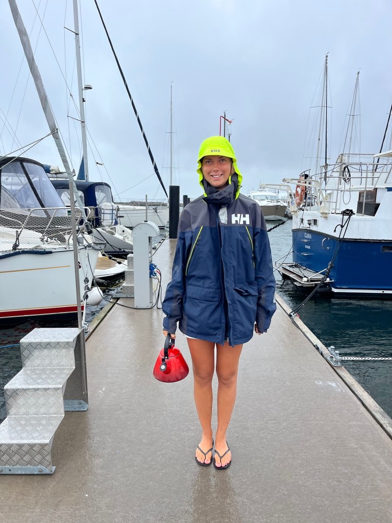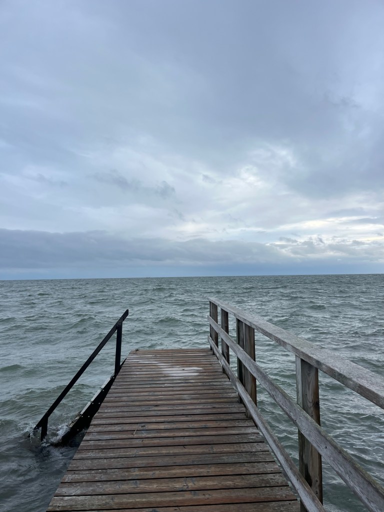 En stilla härlig morgon i Gilleleje. Isen ligger på kajen som ett spår efter landningen av fisk på morgonen när skepparen och frun tar sitt morgonbad i det salta Kattegatt.