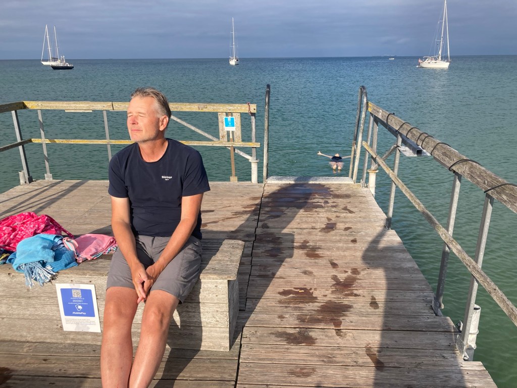 Färgglad lunch i hamnenStora och många dropparÅrets stora händelse – Gilleleje vs. Hundested – går av stapeln om några dagar och Gillelejeroddarna ligger i hårdträningEftermiddagsholkenJohan lagar havskattLite rom efter matenBadbryggan