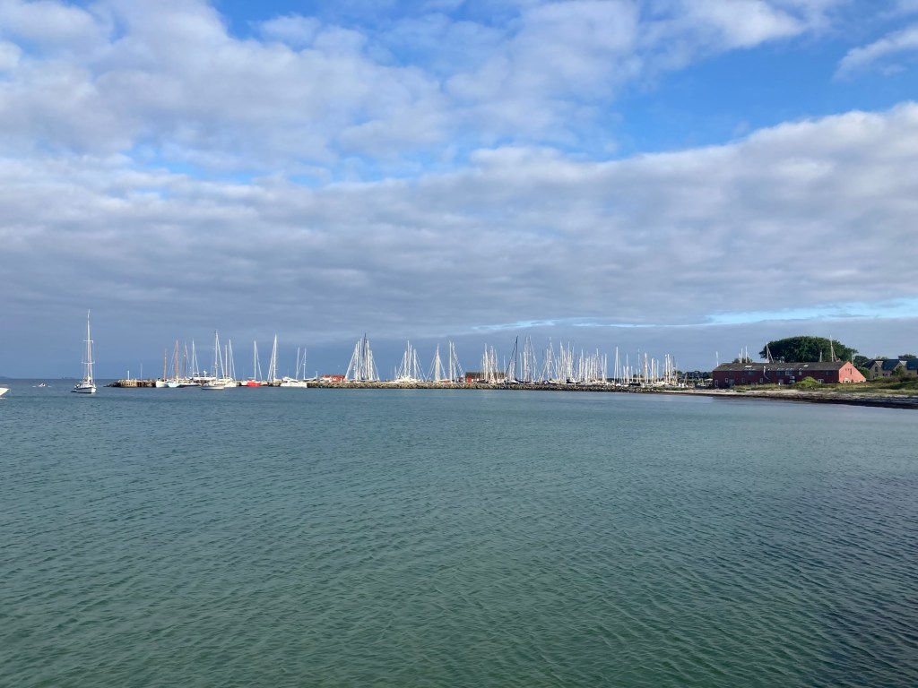 … på Nordsjälland styrde vi kosan. Rorgängare Pettersson tog oss i en stilla läns, övergående i slör, till Sjællands Odde i ömsom sol, ömsom moln. Regnet slapp vi denna dag.