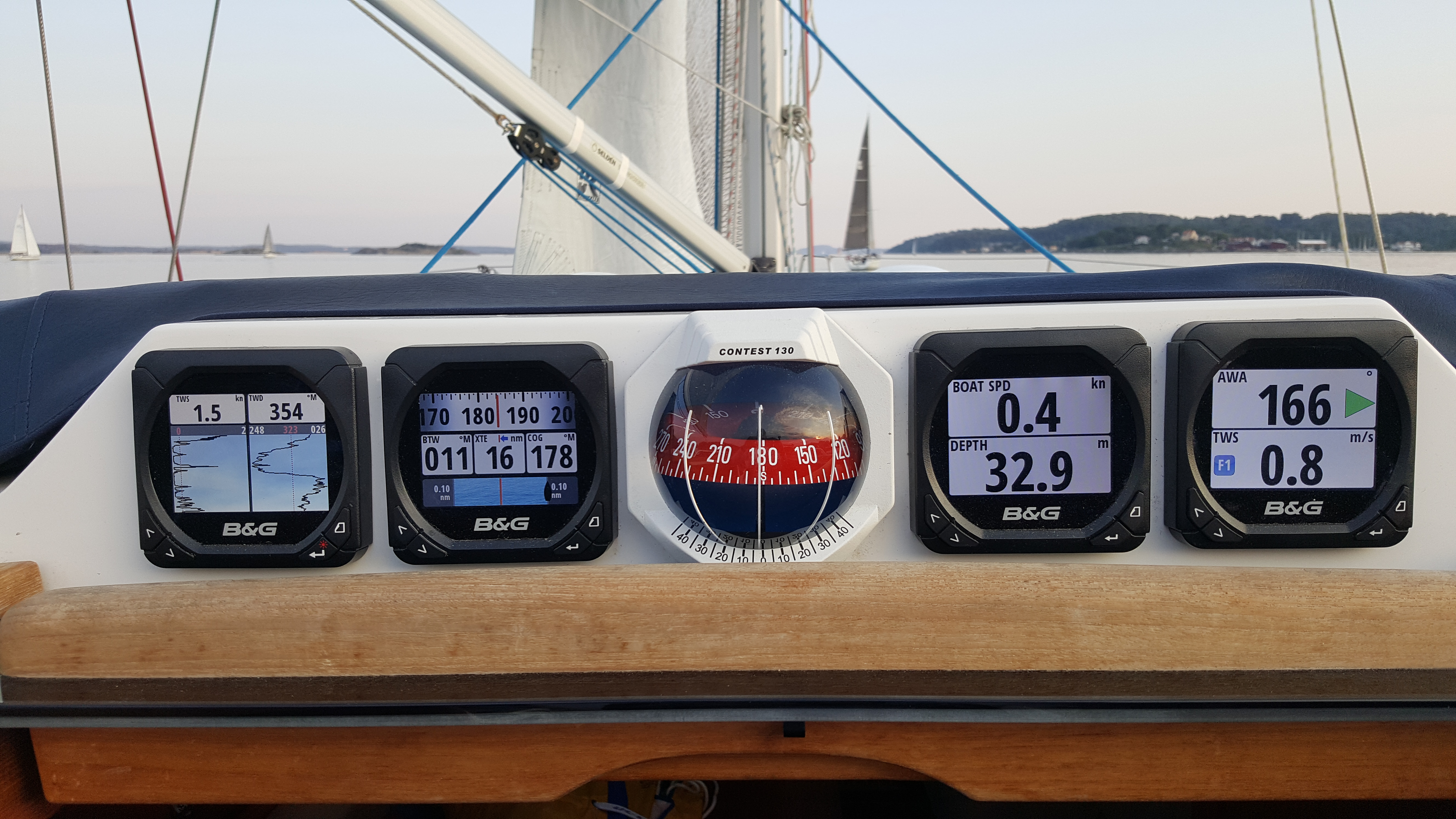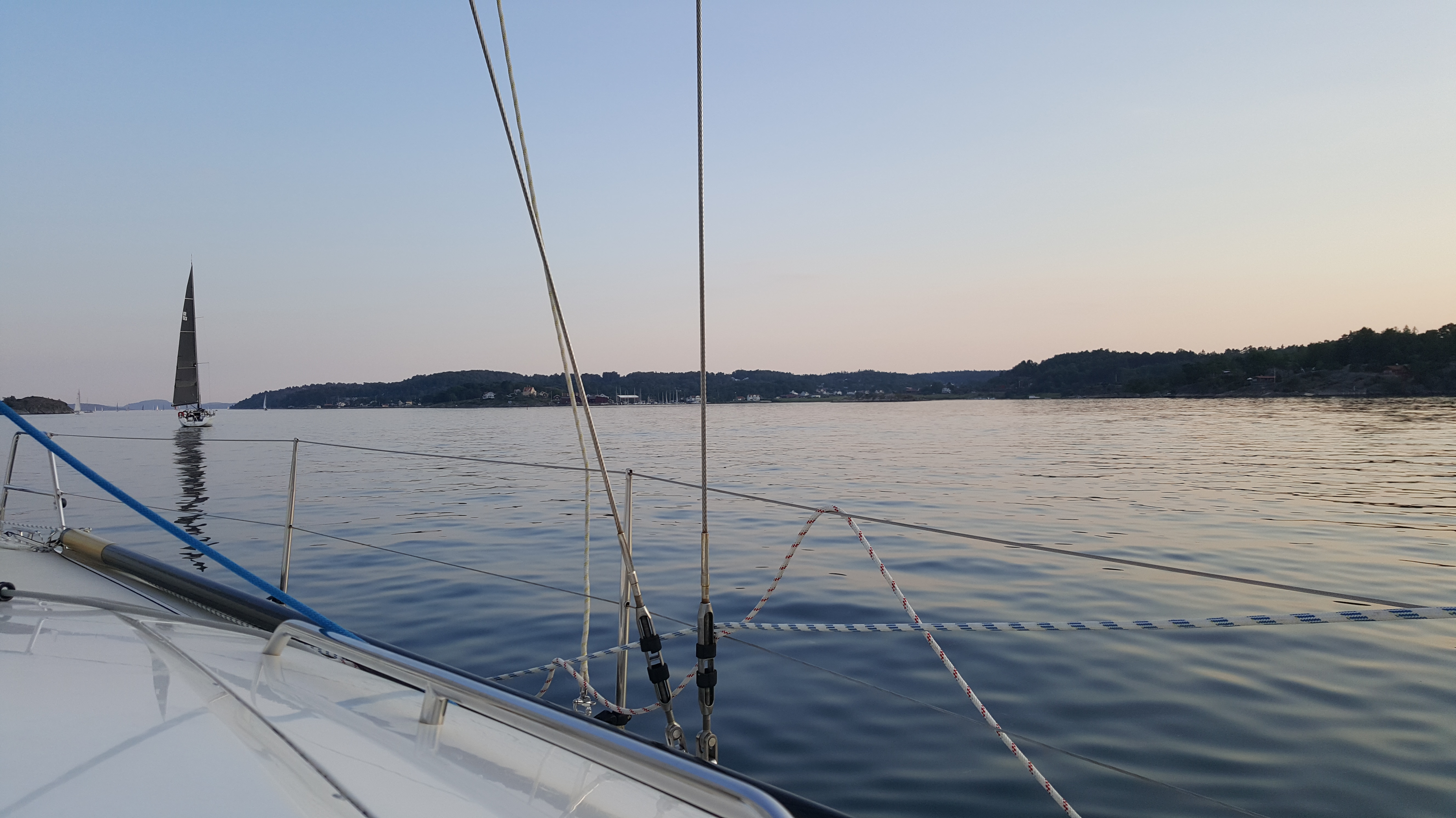 Framåt 5-rycket kommer dock den utlovade ostvinden inrullandes och vi får gå för spinnaker ut mot Hätteberget. Arcona 430 Storm-stina och även First 40 Crumbles efter oss. Så även om det finns de i samma klass som vi upplever havet före oss så är det fler som får kämpa under de lätta förhållandena.